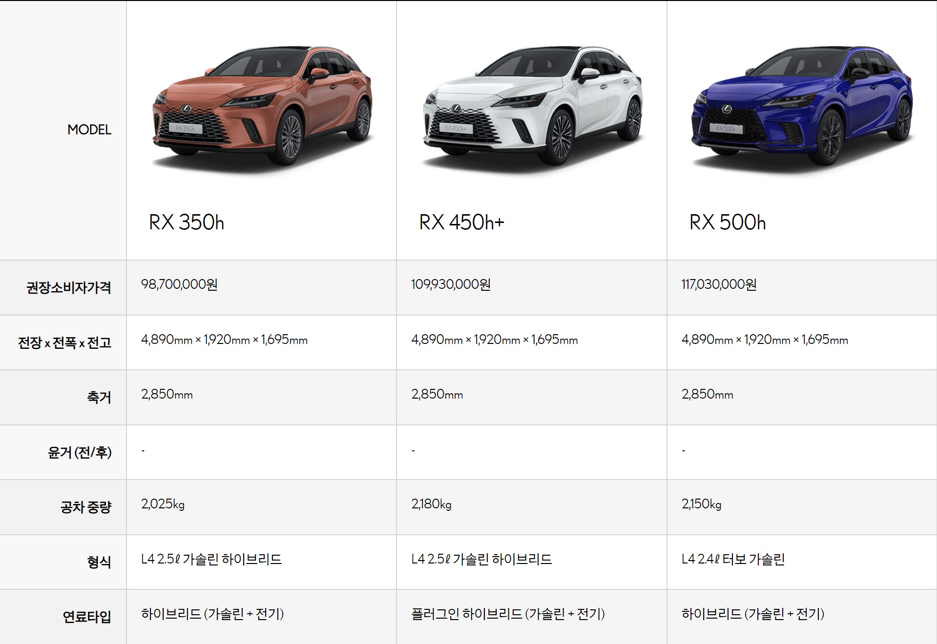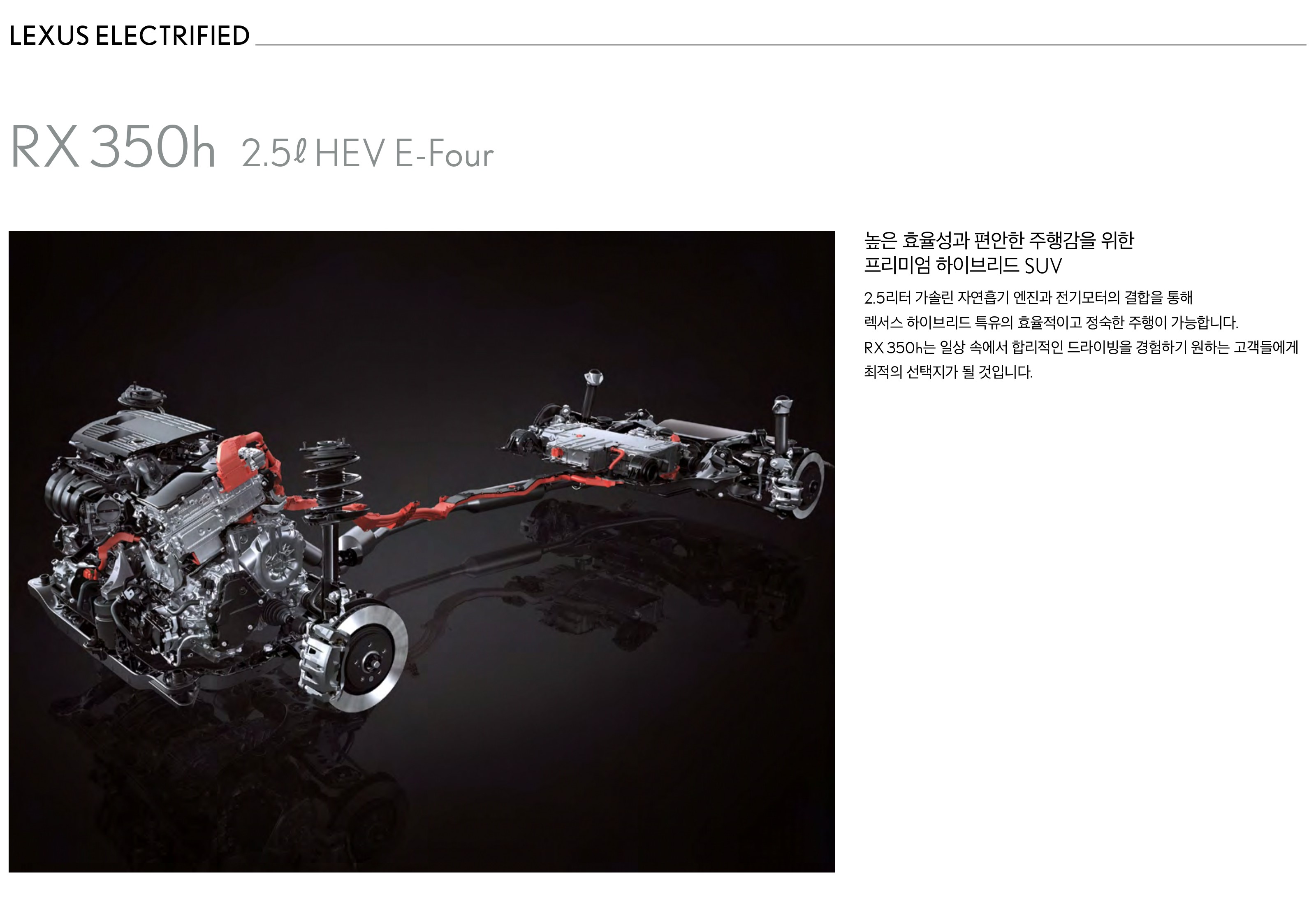 우선 RX 가격표 보시기에 앞서, RX의 파워트레인을 먼저 한 번 보시겠습니다.