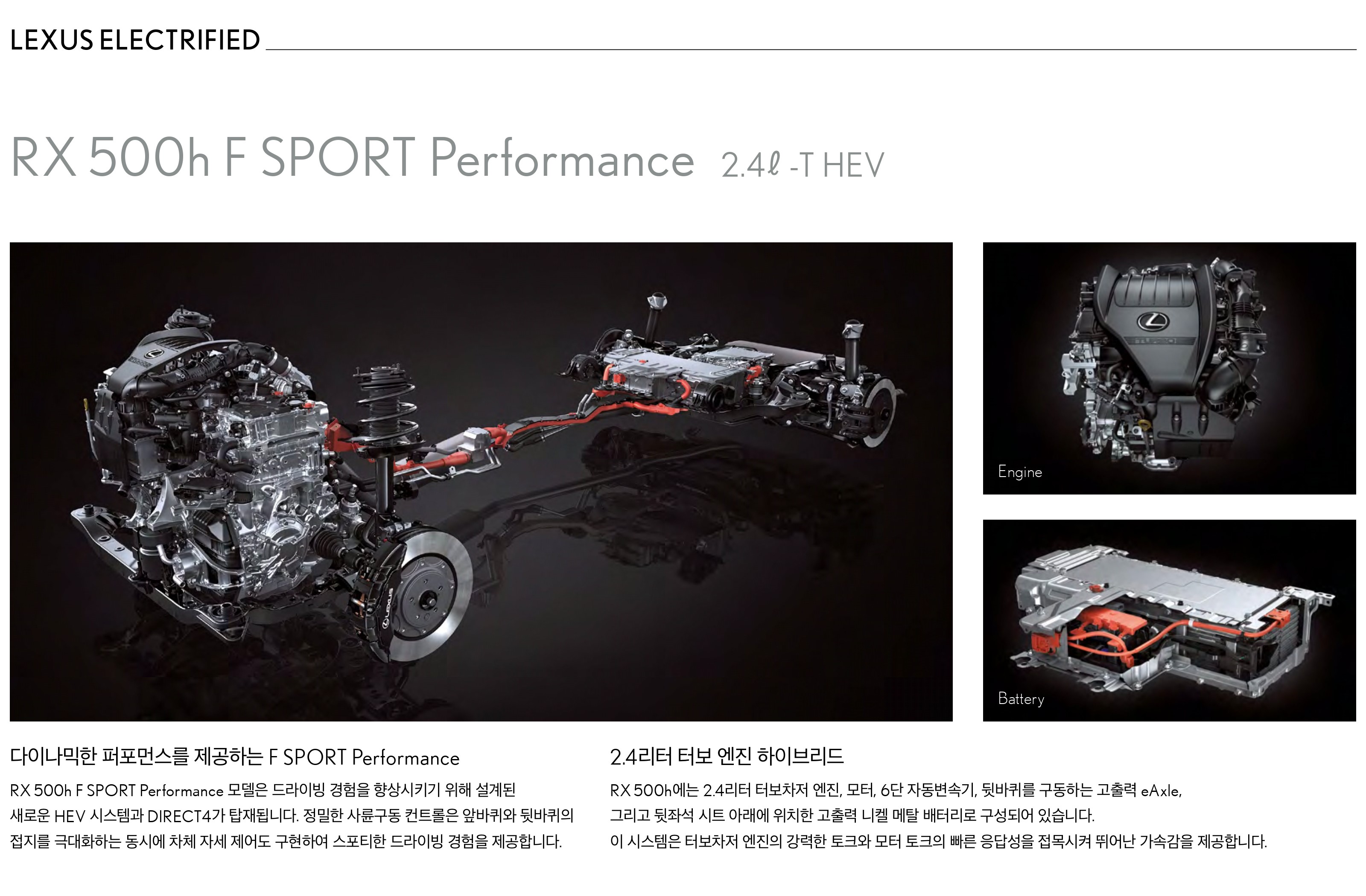 참고로, RX500h는 성능도 고성능이지만, F스포츠 패키지가 적용되는 점 알고 가시면 좋습니다.
