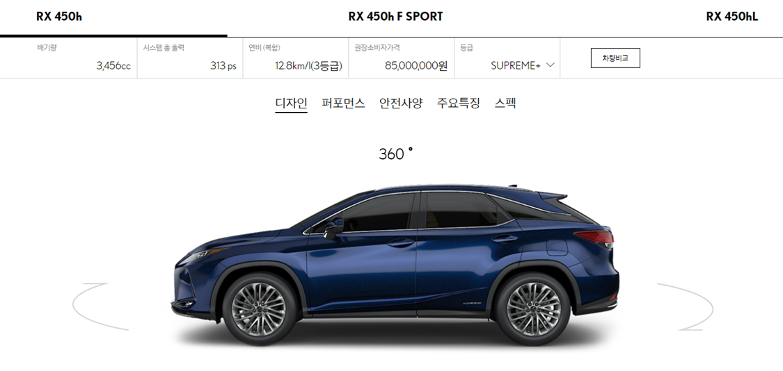 개인적으로는 조금 아쉬운게, RX350h 혹은 RX450h+ 에도 F스포츠 패키지 적용을 해주면 어땠을까 싶기도 합니다.