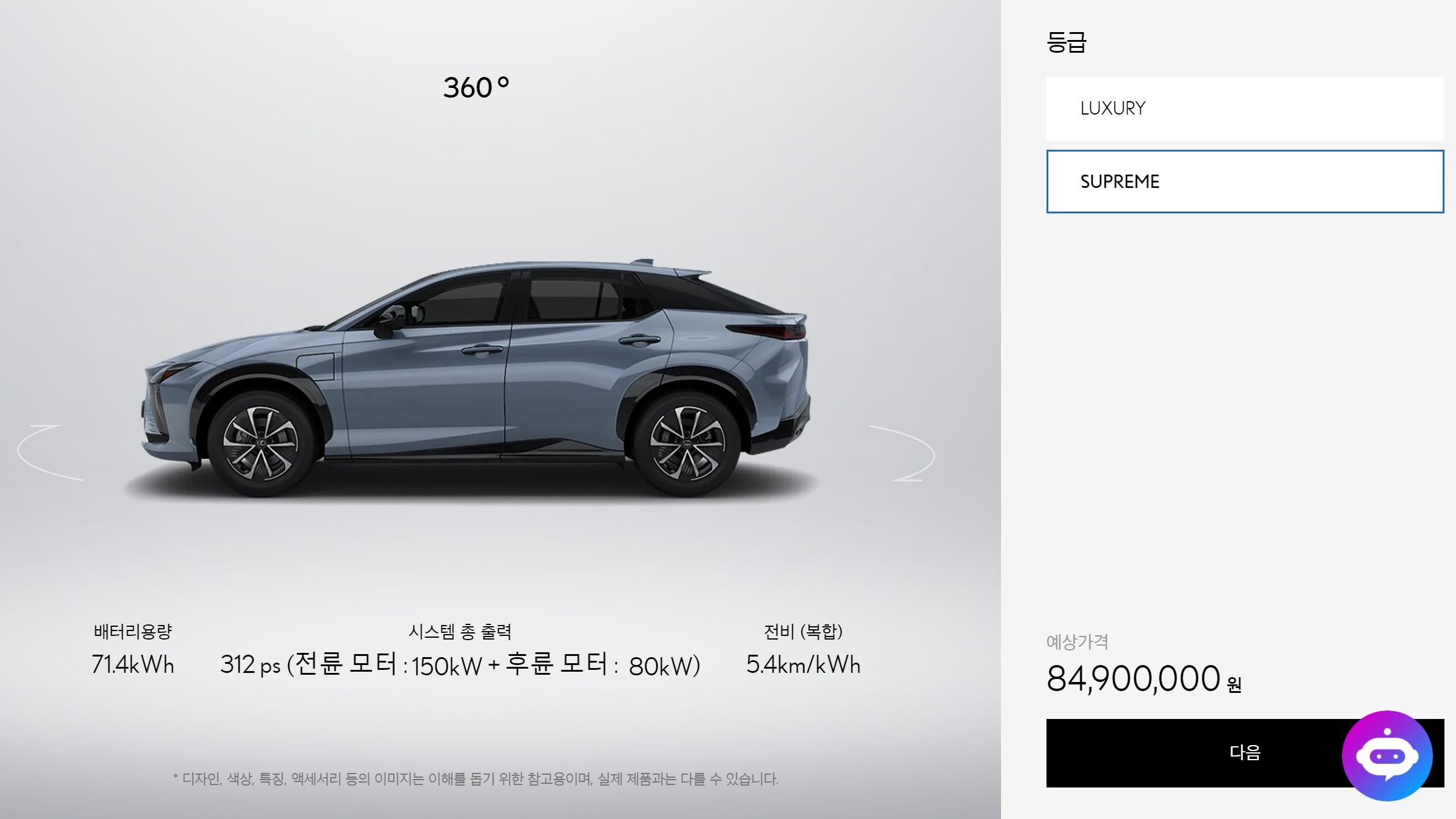 렉서스 RZ450e 슈프림 : 8490만원