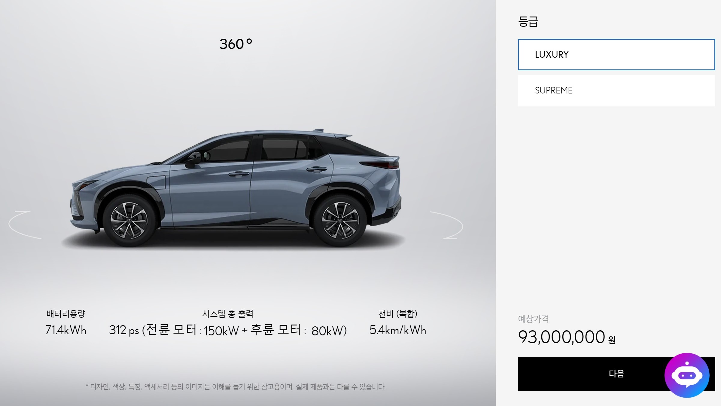 렉서스 RZ450e 럭셔리 : 9300만원