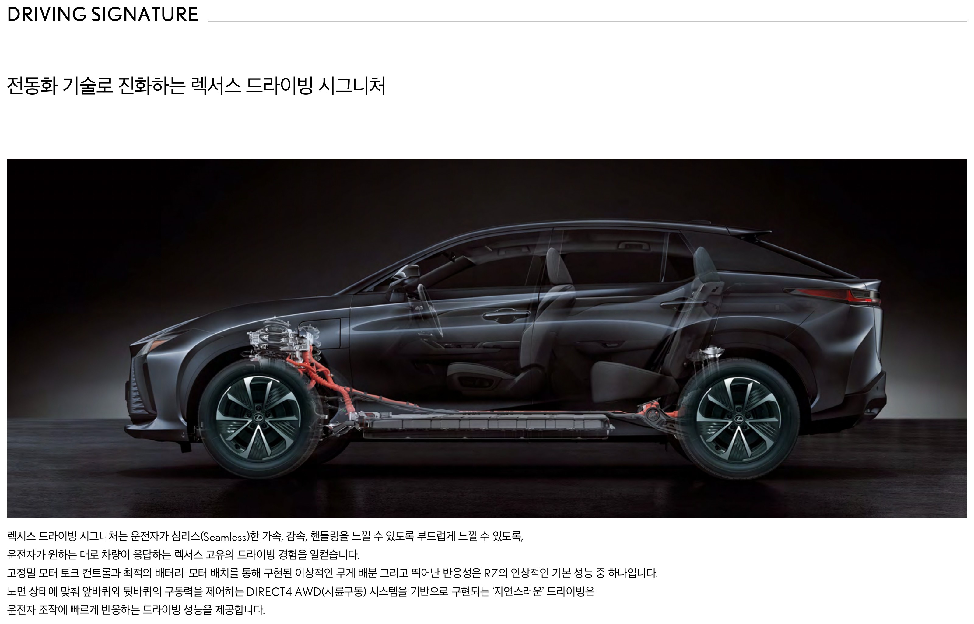 반대로, 이번 렉서스 RZ 는 렉서스에서 제대로 전기차로 출시한 첫 차종이기도 하고요.