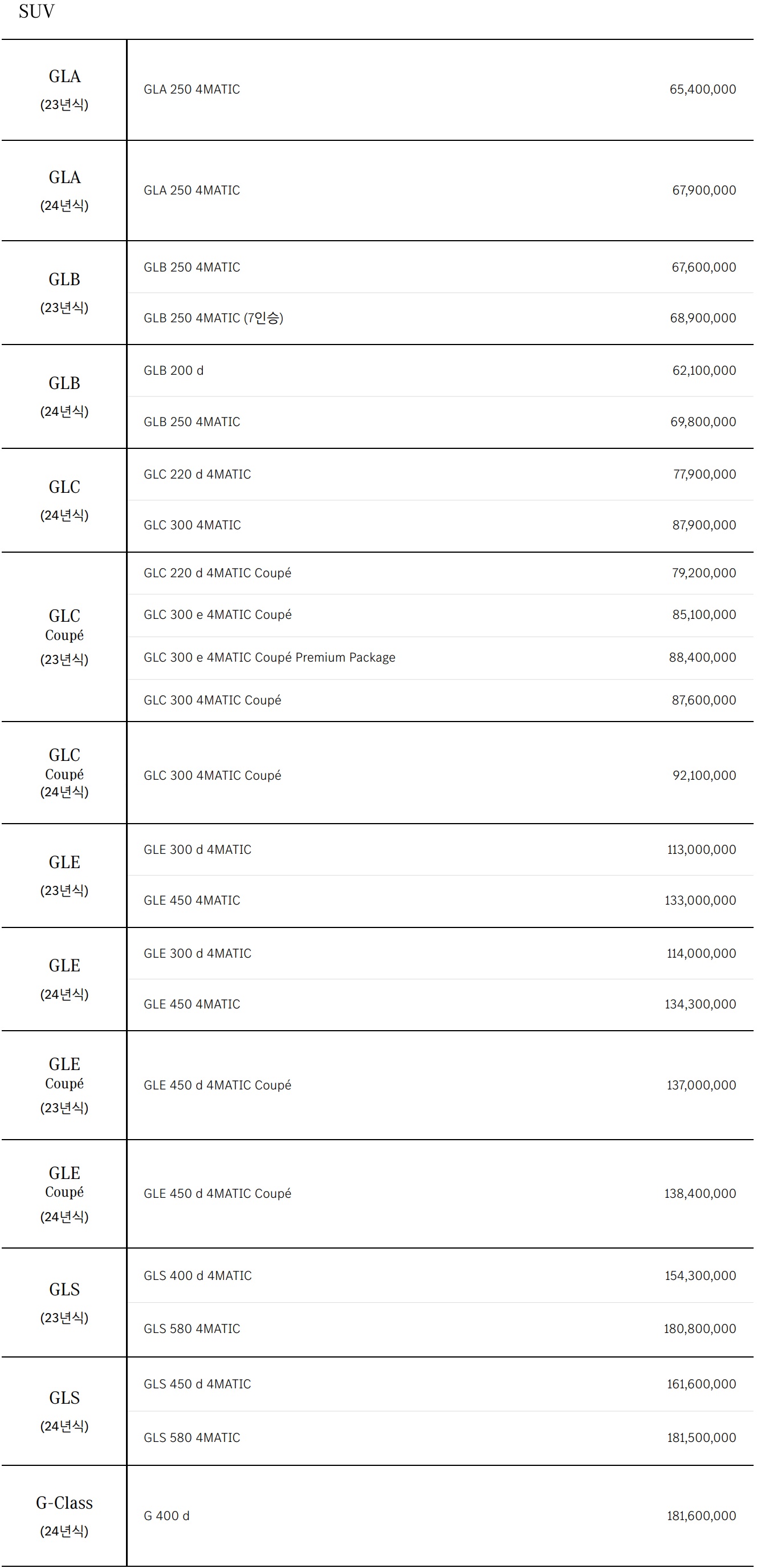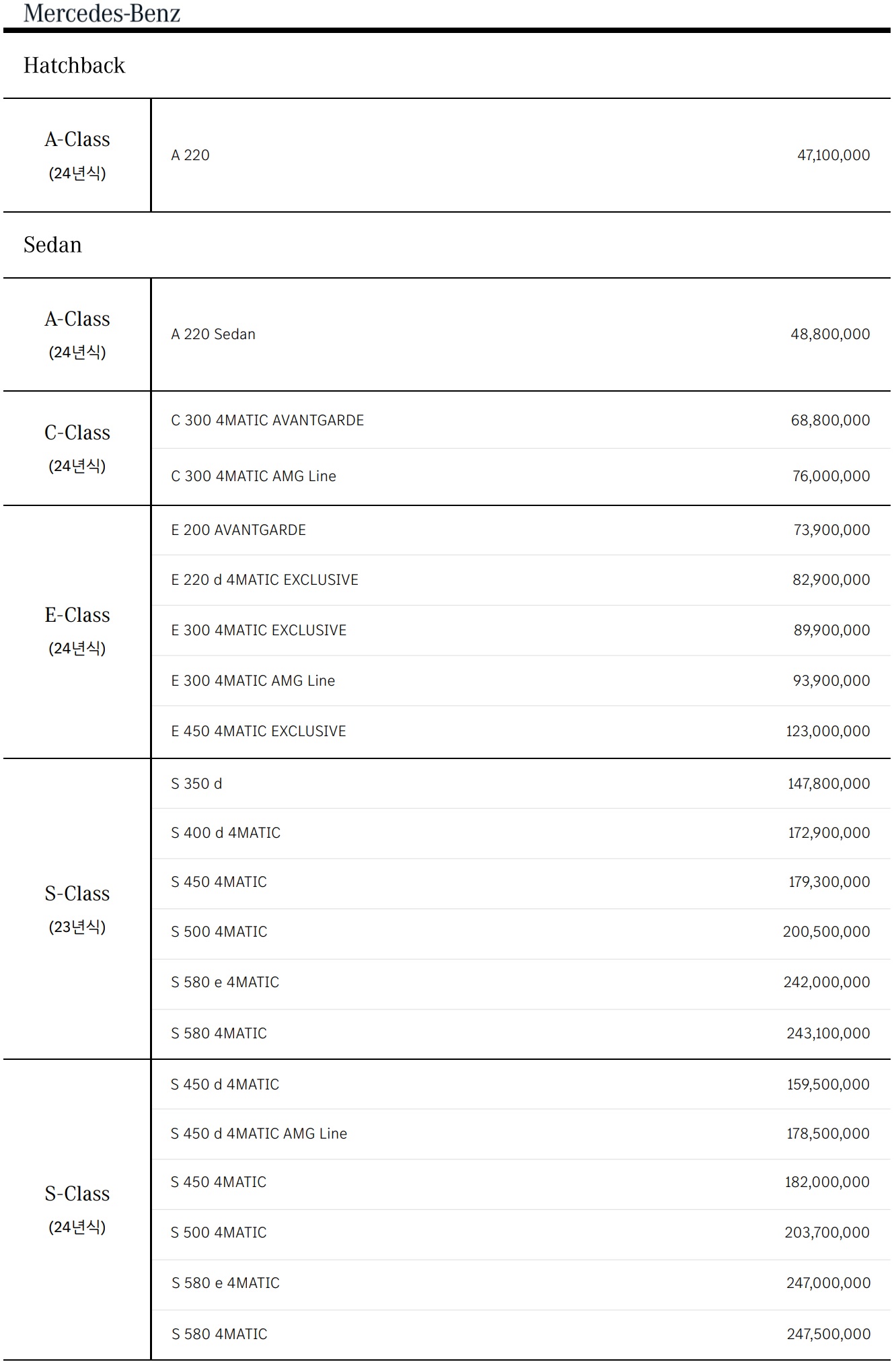 ▼ 2024년 3월 벤츠 전차종 가격표 ▼