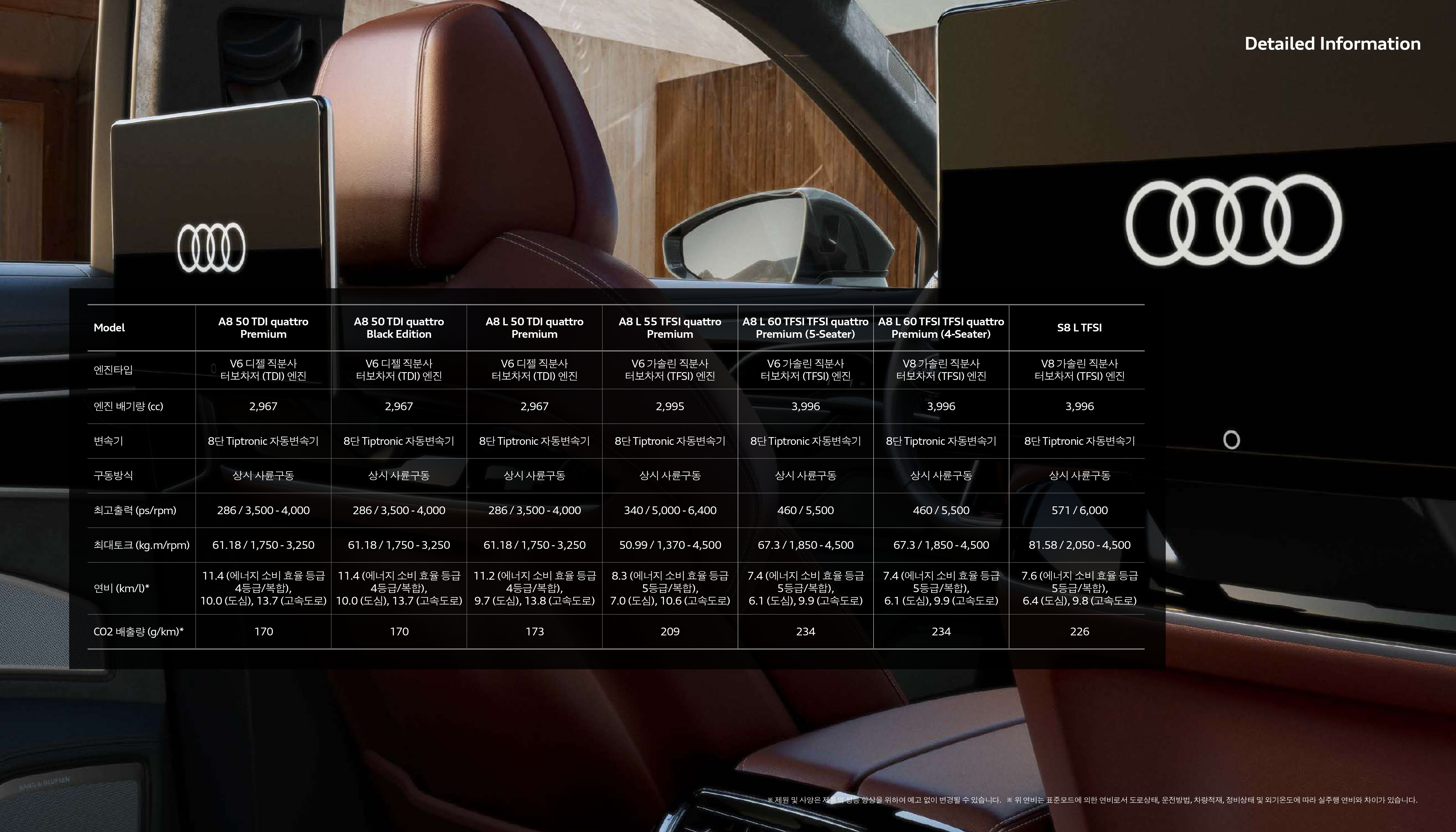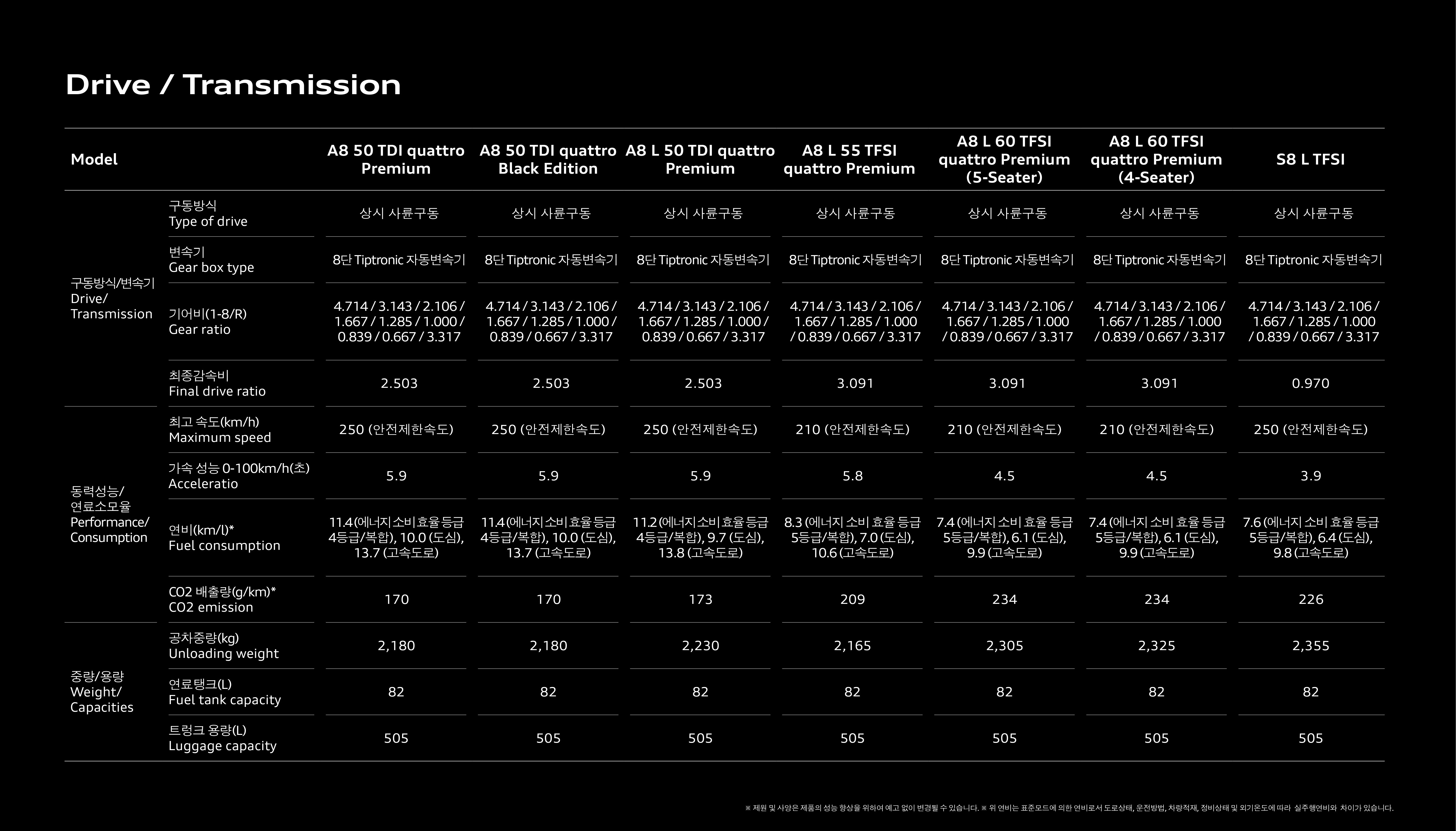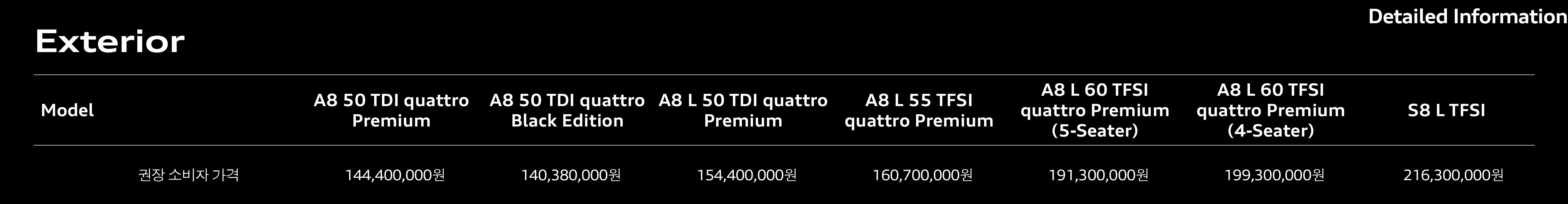 가격표 소개에 앞서, 국내에 판매되는 A8 모델들에 대한 간략한 정보입니다.