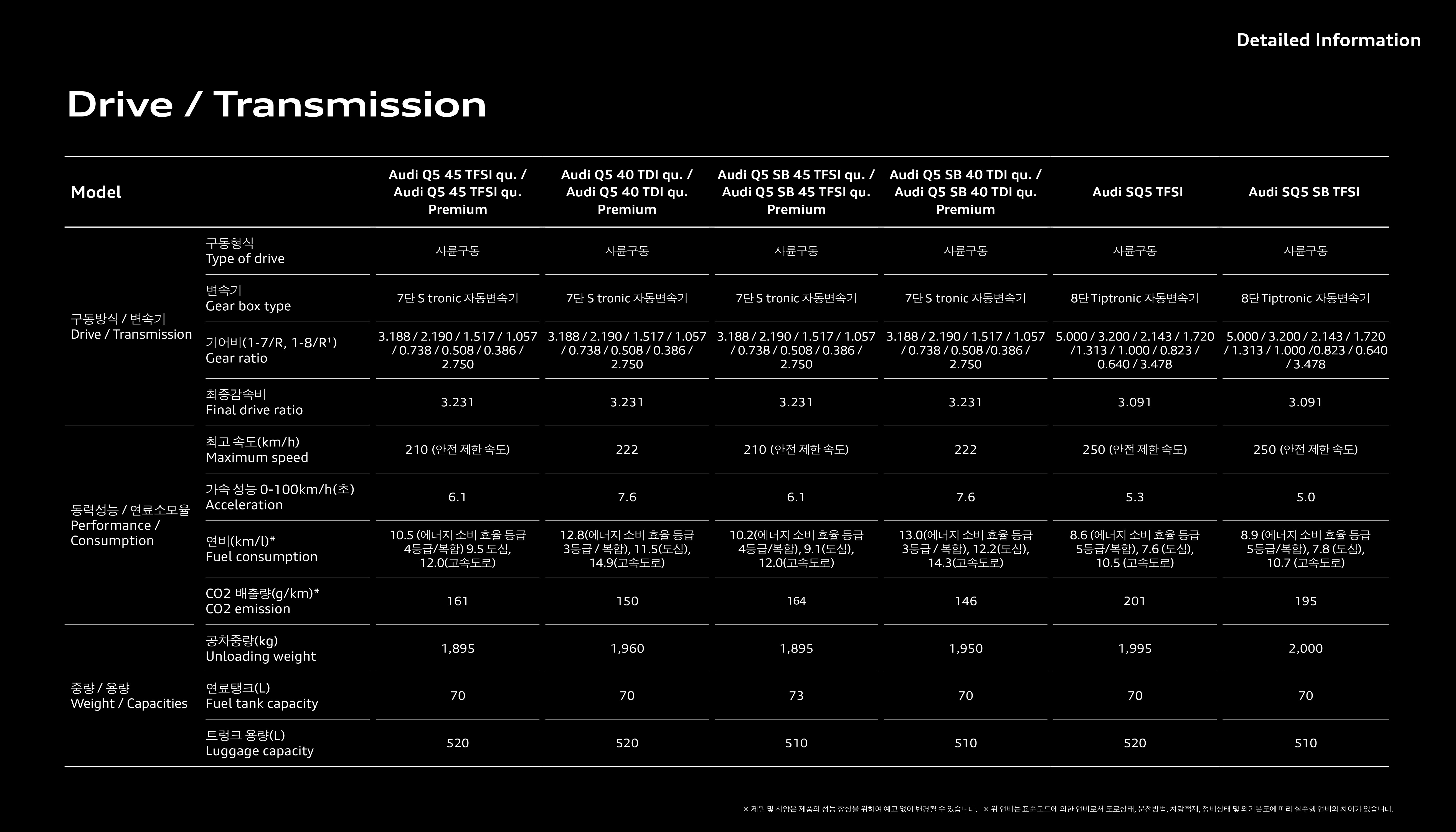 특히, 고성능 모델인 SQ5의 성능이 돋보이는 건 물론이기도 하고요.