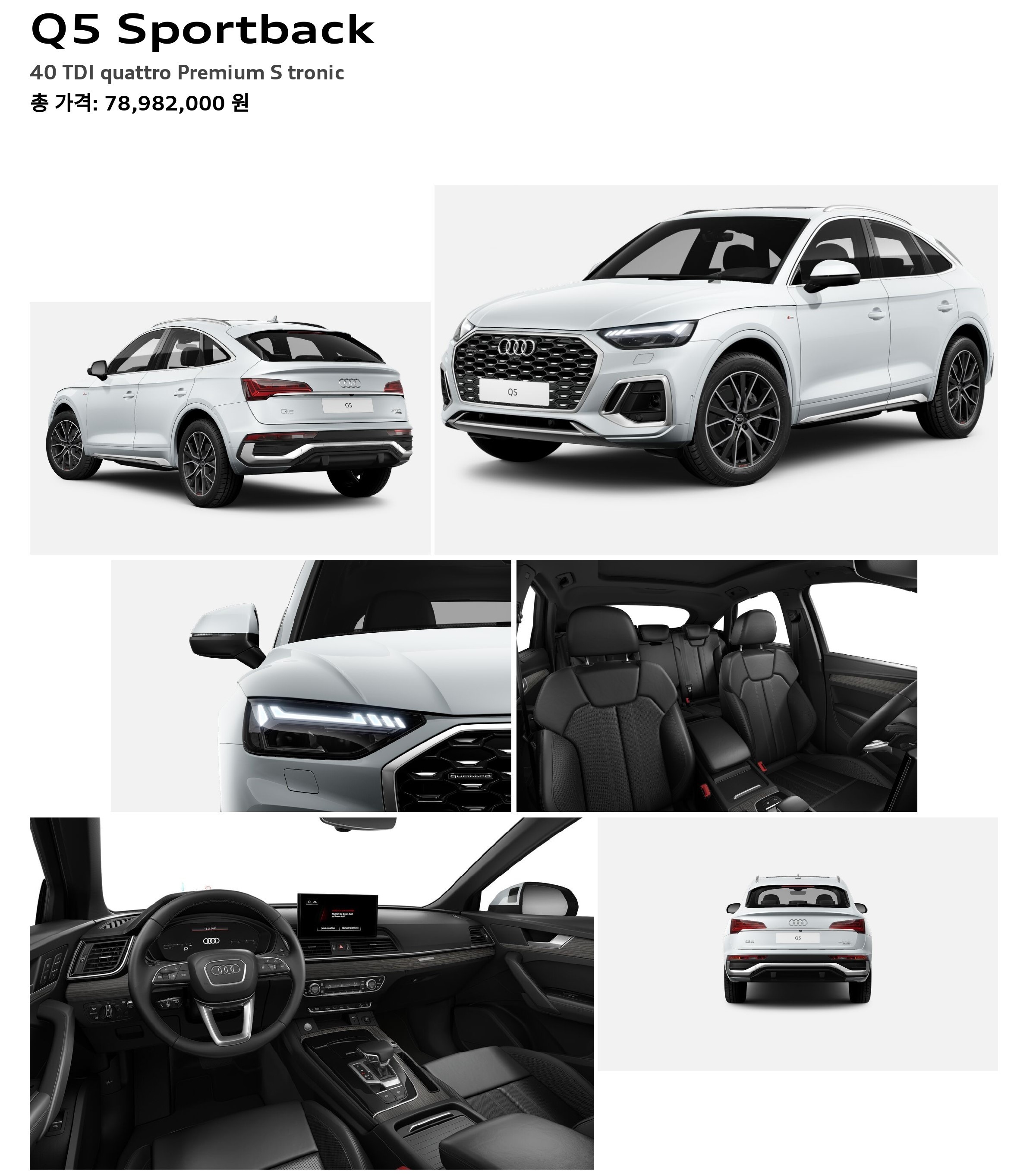 Q5 스포트백 40TDI 프리미엄 : 7,898 만원