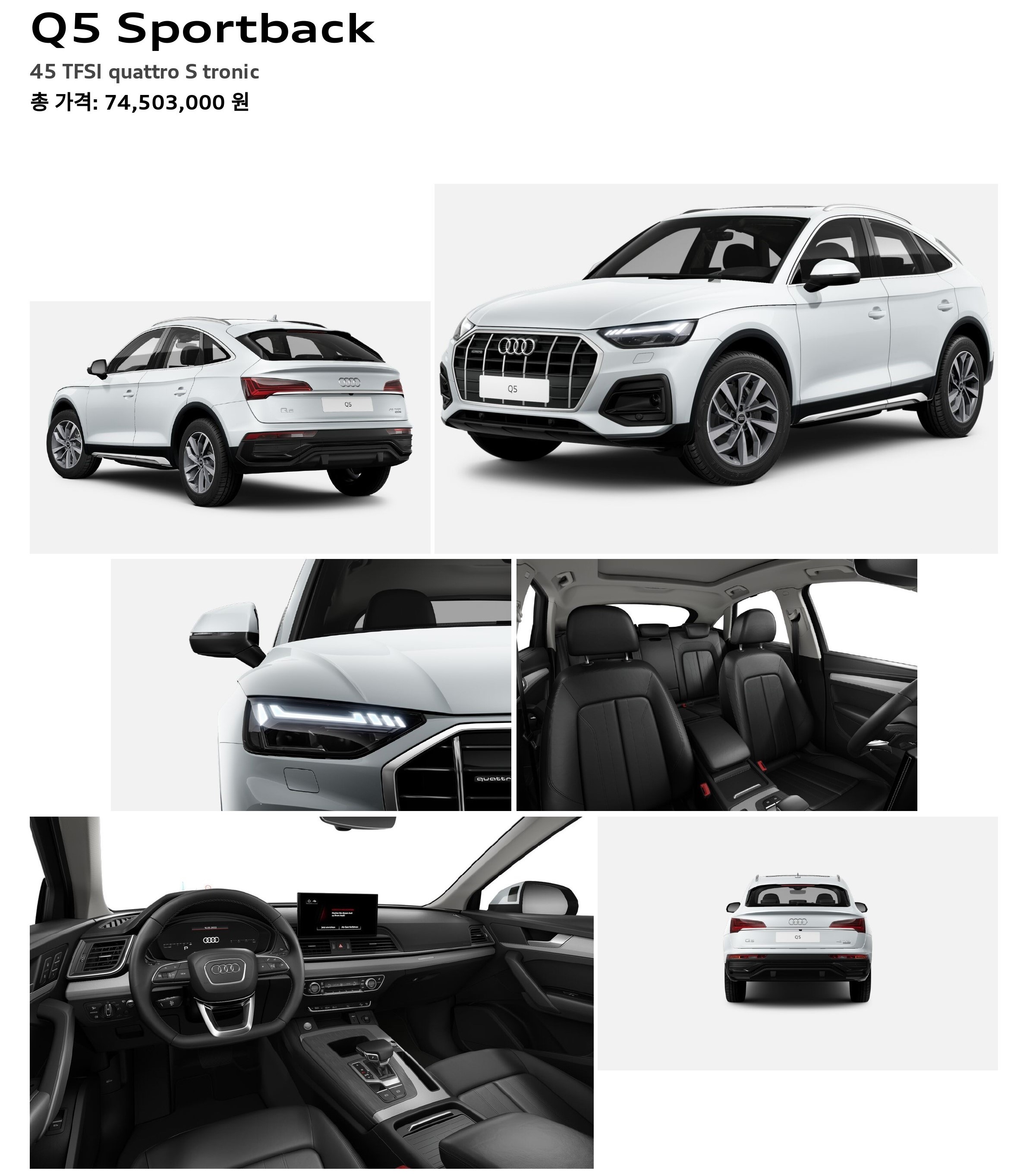 Q5 스포트백 45TFSI 컴포트 : 7,450 만원