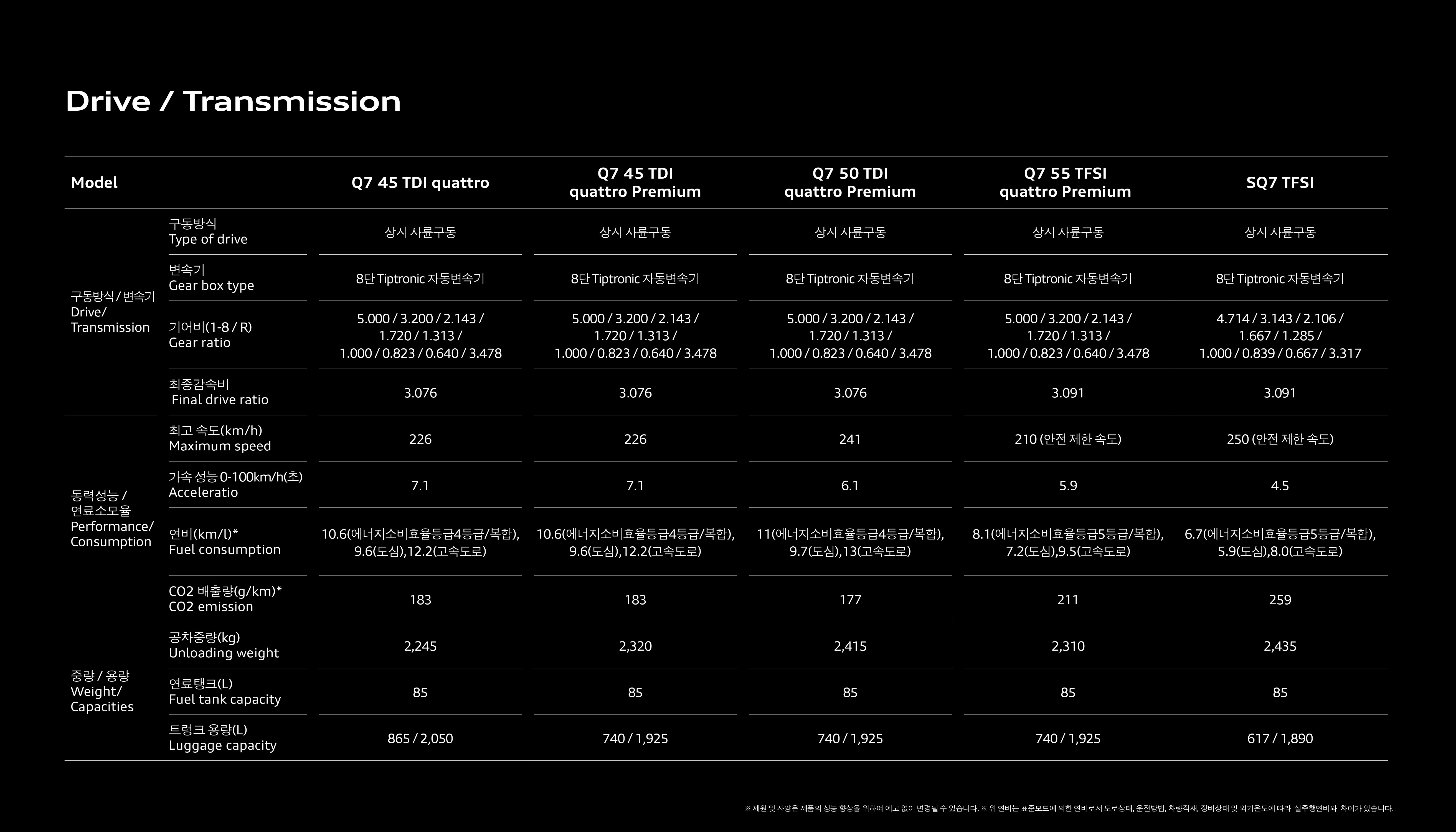 ▼ 2023 아우디 Q7 제원(스펙) ▼