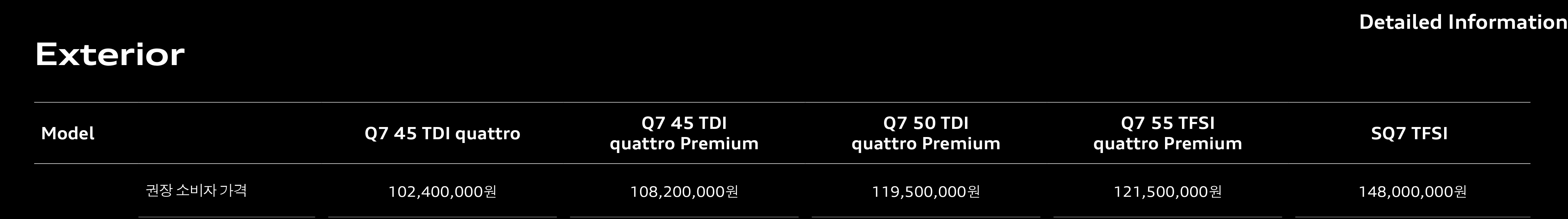다만, 이렇게 보니 유일하게 S라인 익스테리어 패키지가 적용되지 않은 Q7 45TDI 컴포트도 생각보다 괜찮아 보입니다.