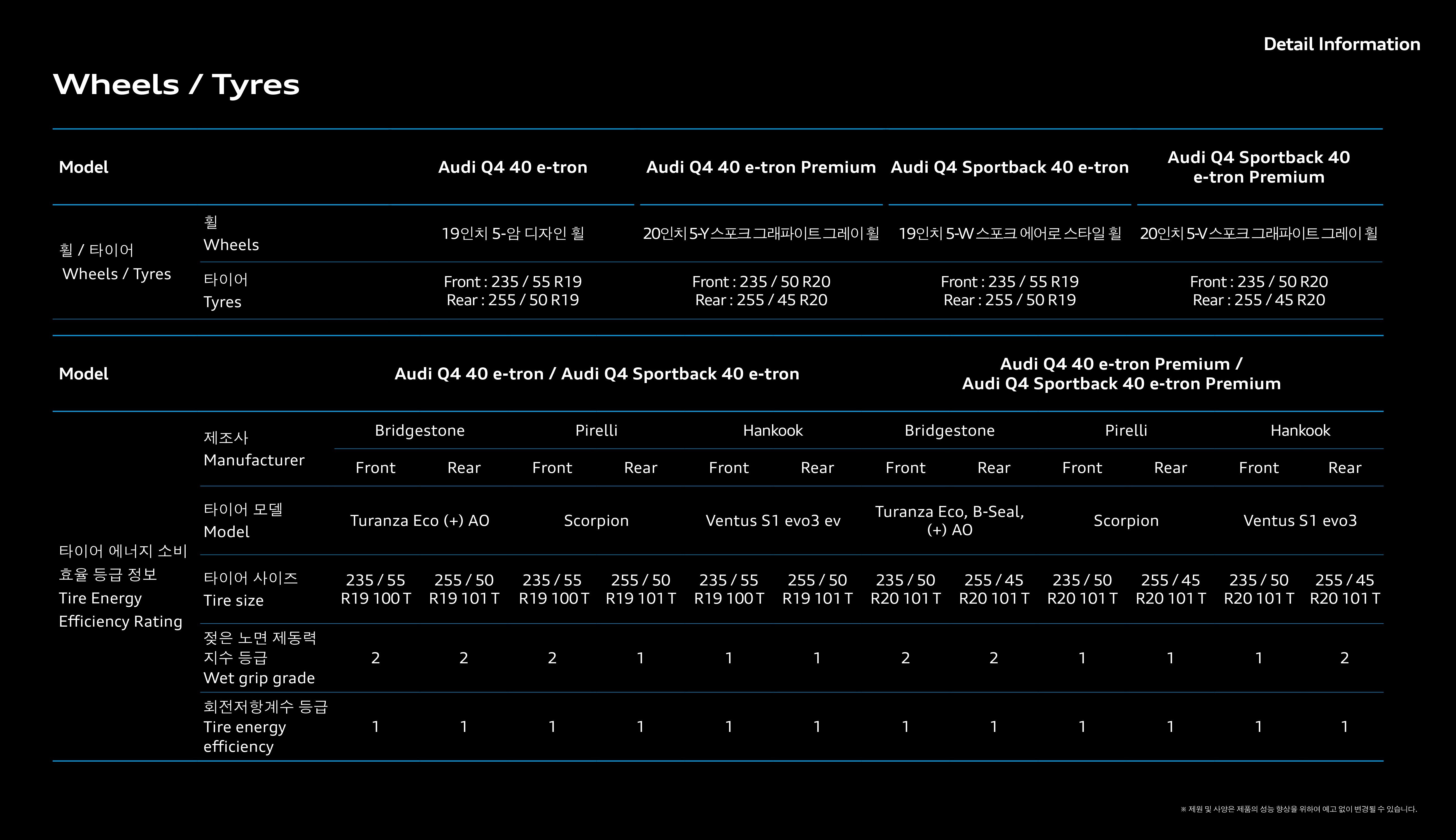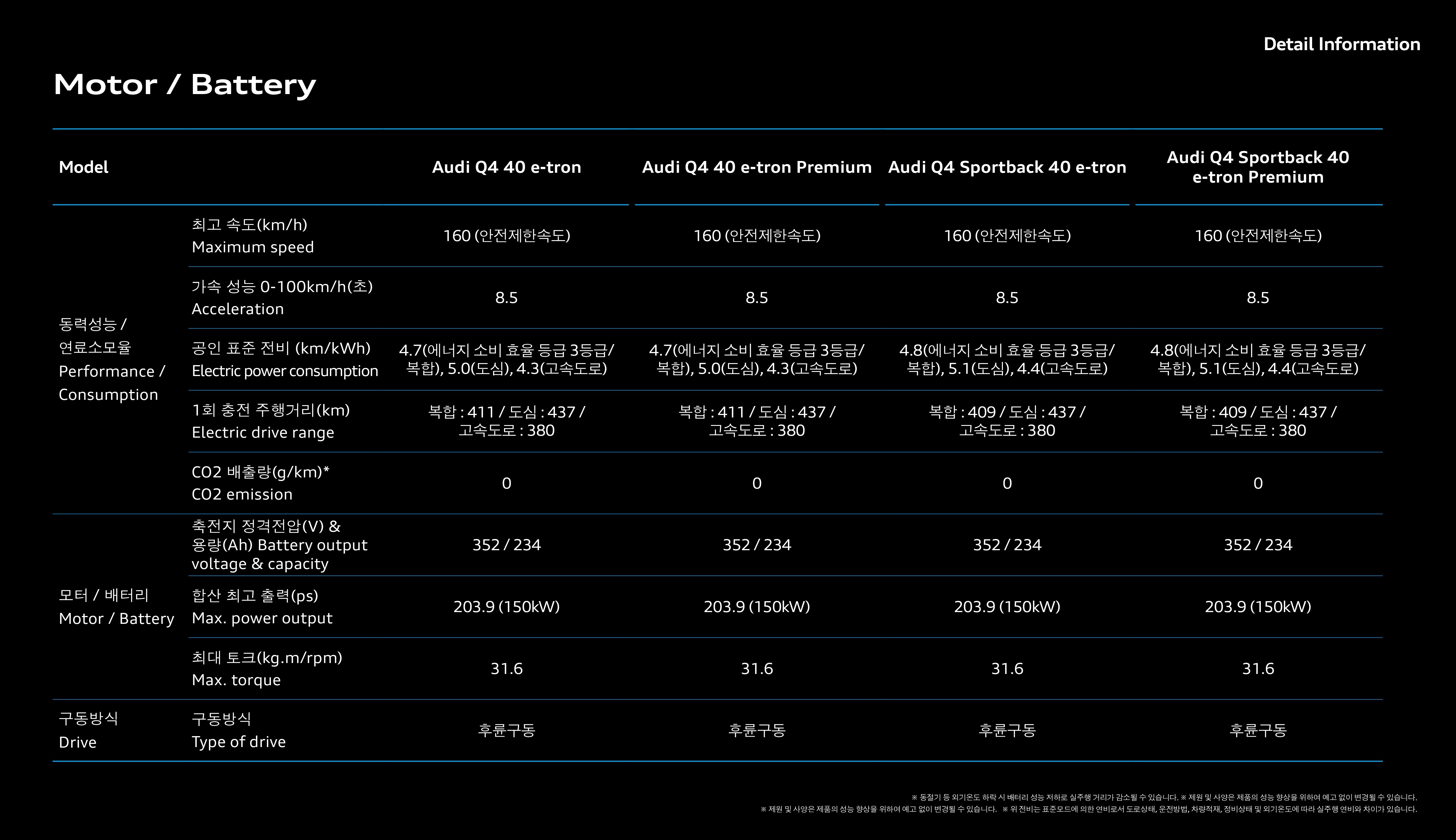 마지막으로 준비한 Q4 e-tron 의 스펙입니다.