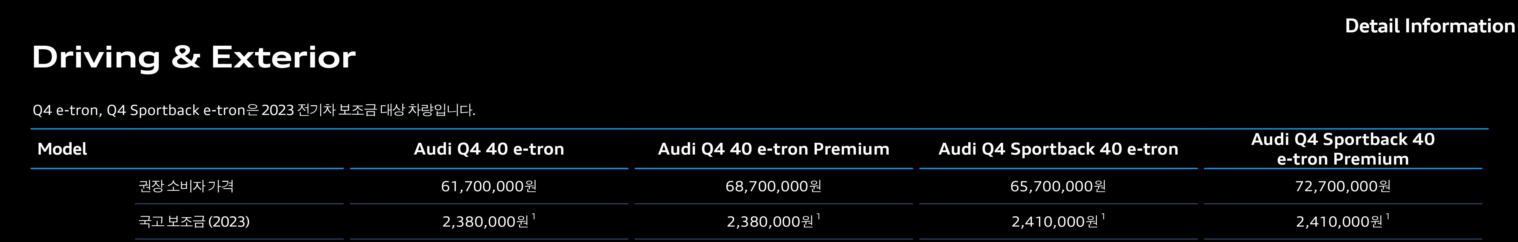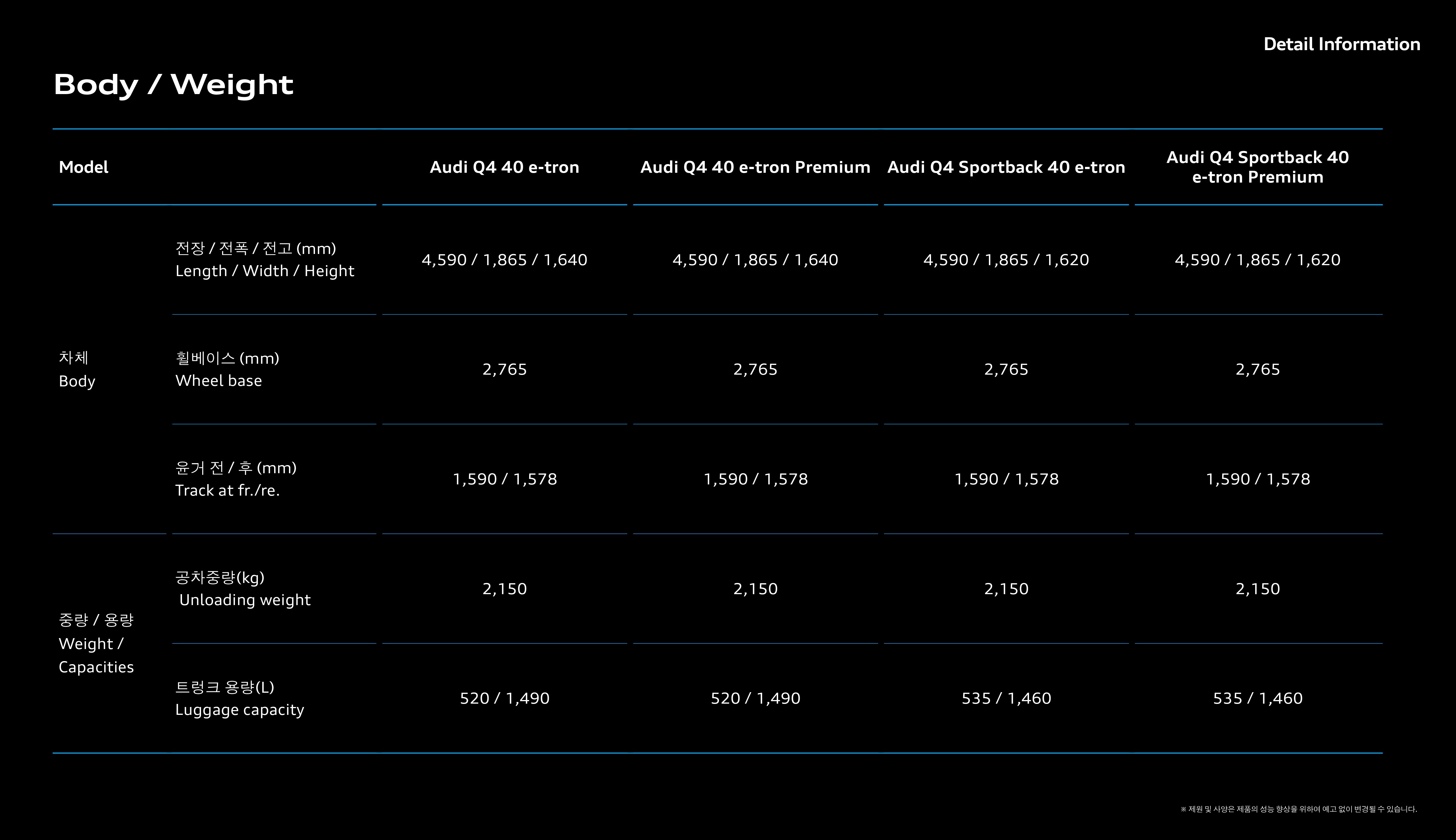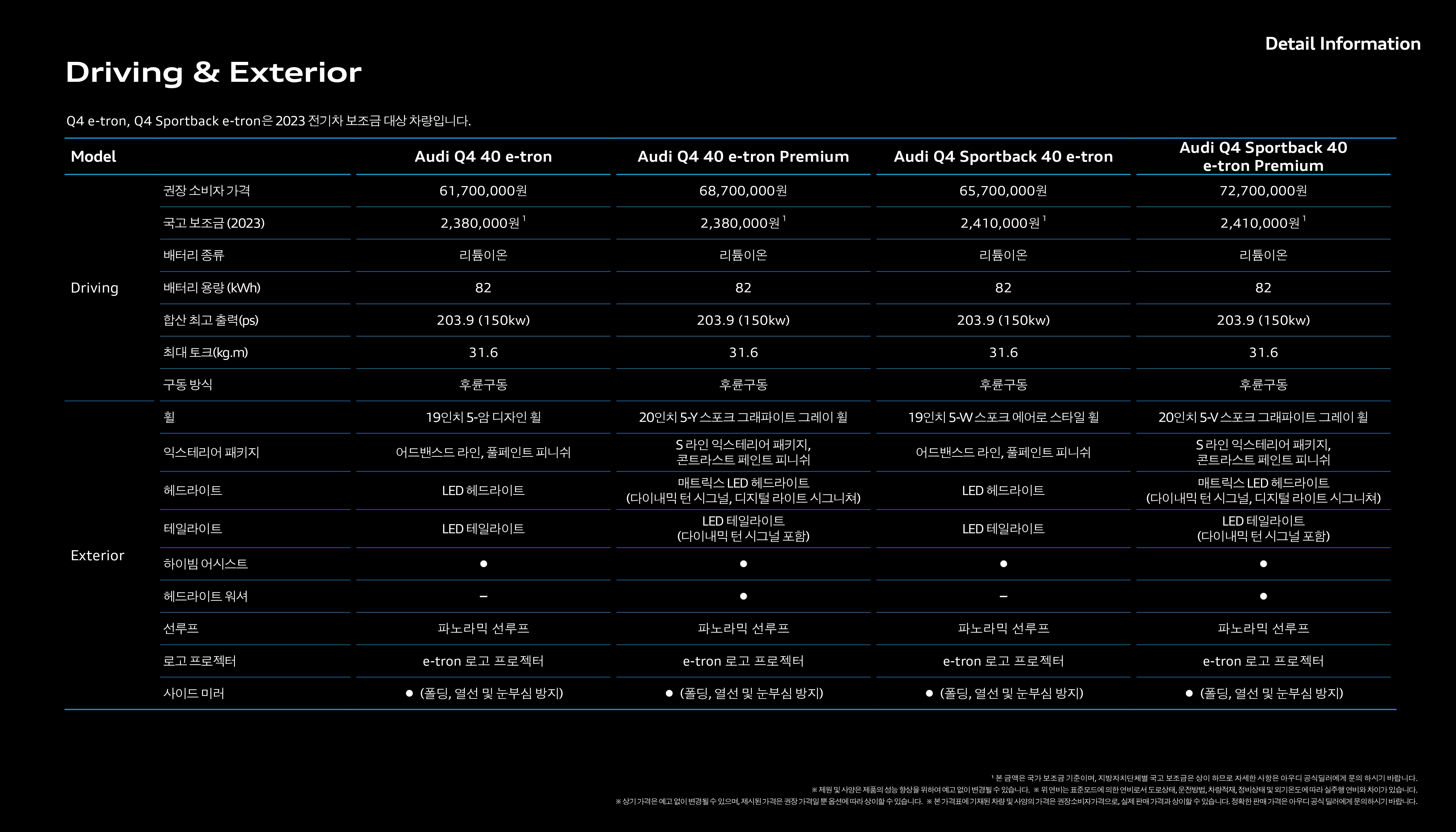 ▼ 2023 아우디 Q4 e-tron 제원표 ▼