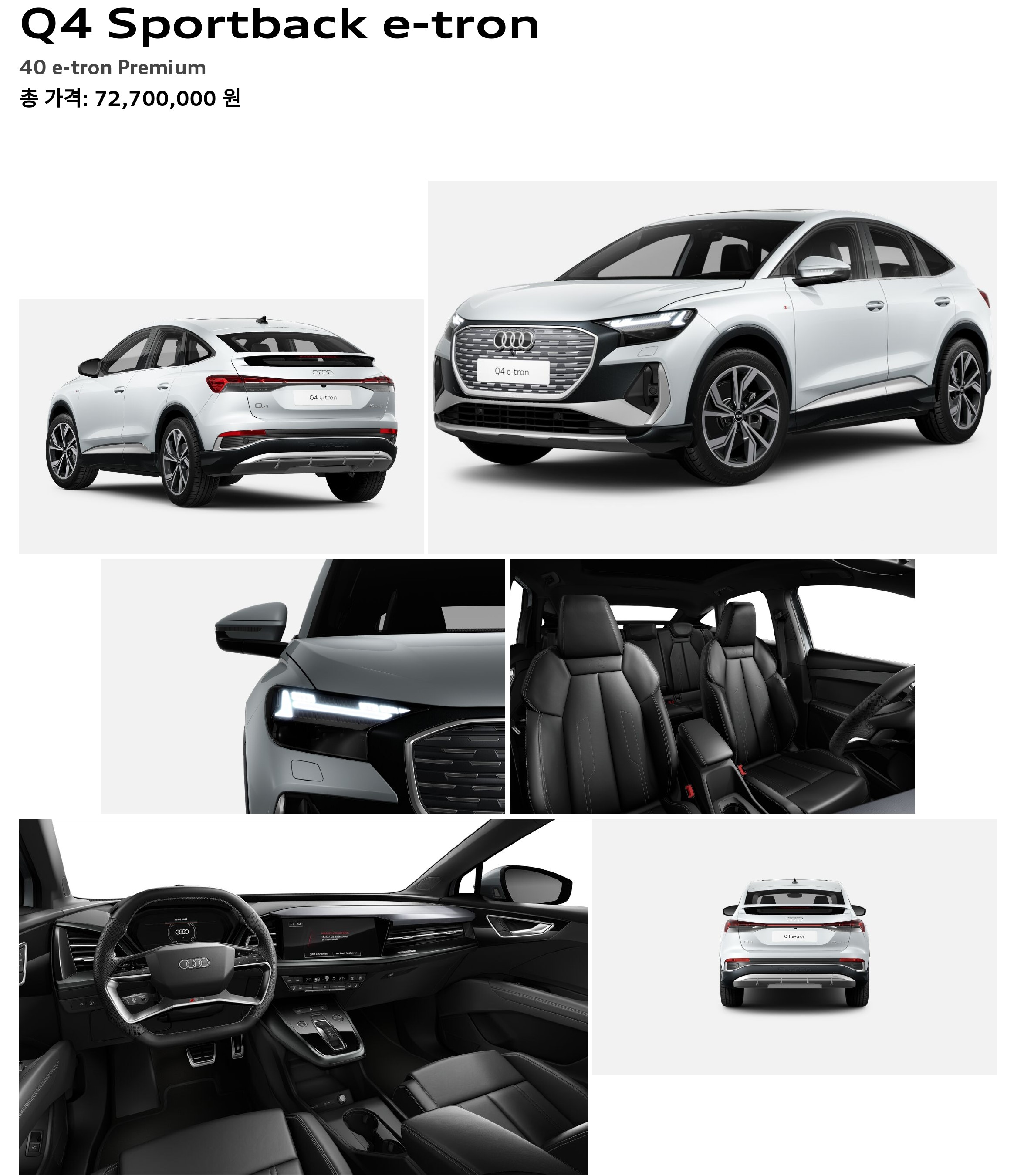 Q4 스포트백 e-tron 프리미엄 : 7,270 만원