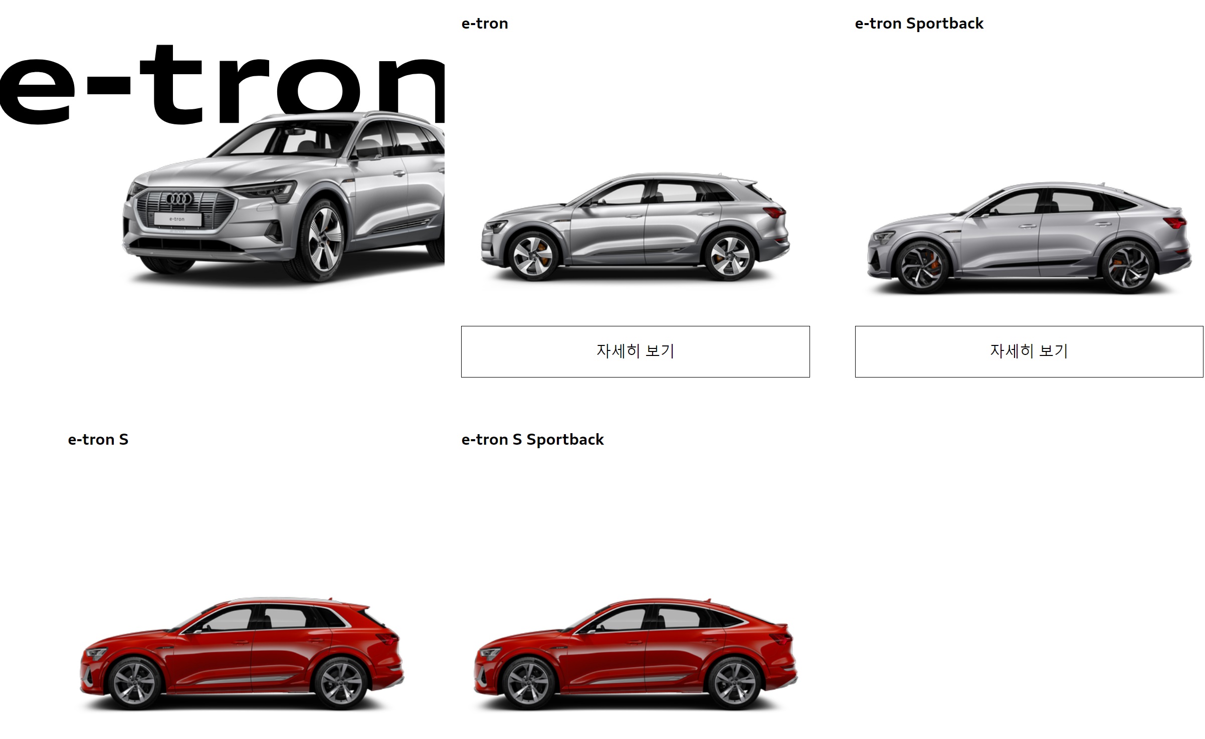 우선 국내에 판매되고 있는 e트론 라인업을 보시면, 아래와 같이 4종류처럼 보입니다.