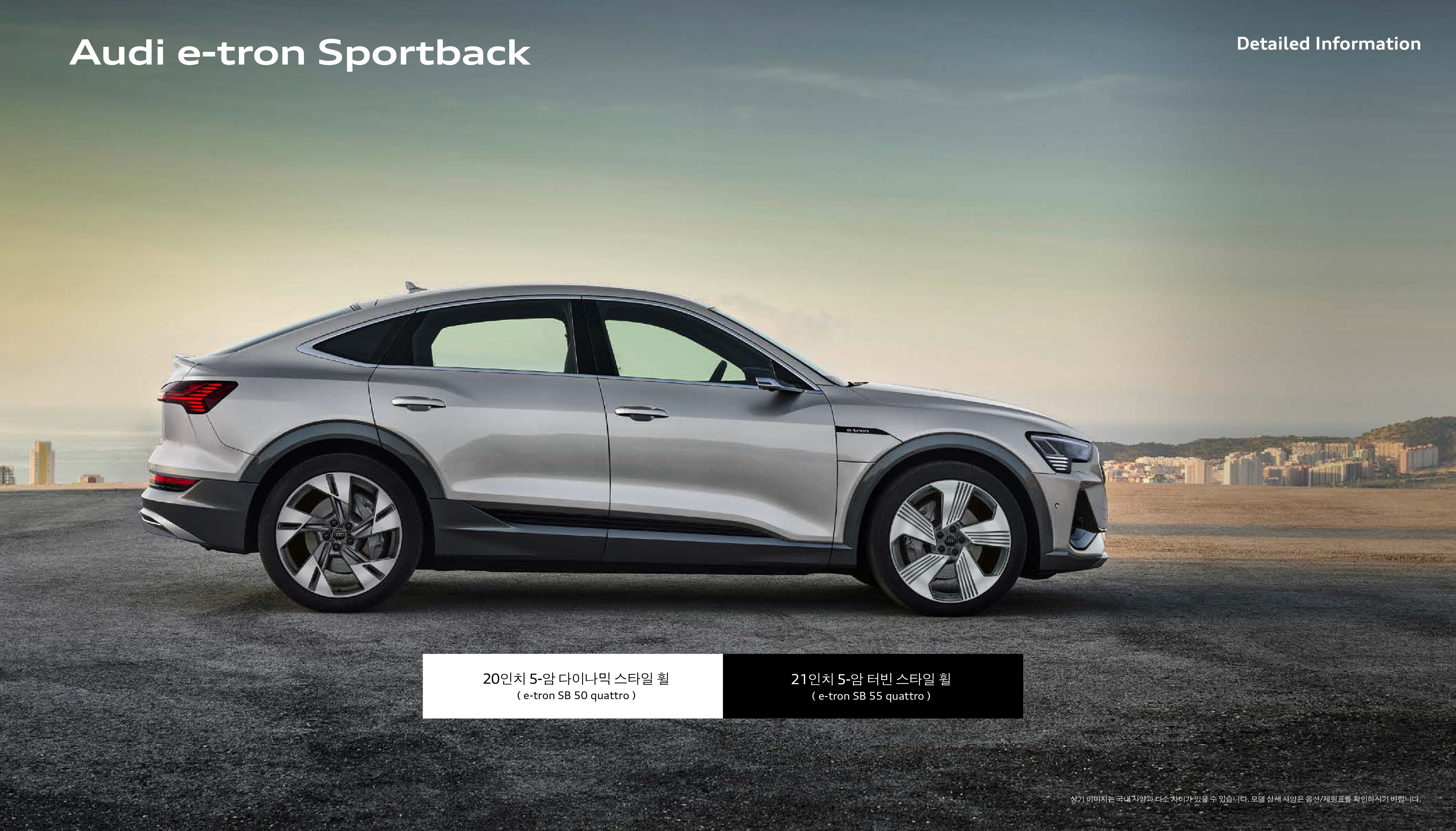 역시 e-tron 스포트백 55 콰트로에만 21인치 휠이 적용되고, 나머지 모델은 전부 20인치 모델이 들어갑니다.
