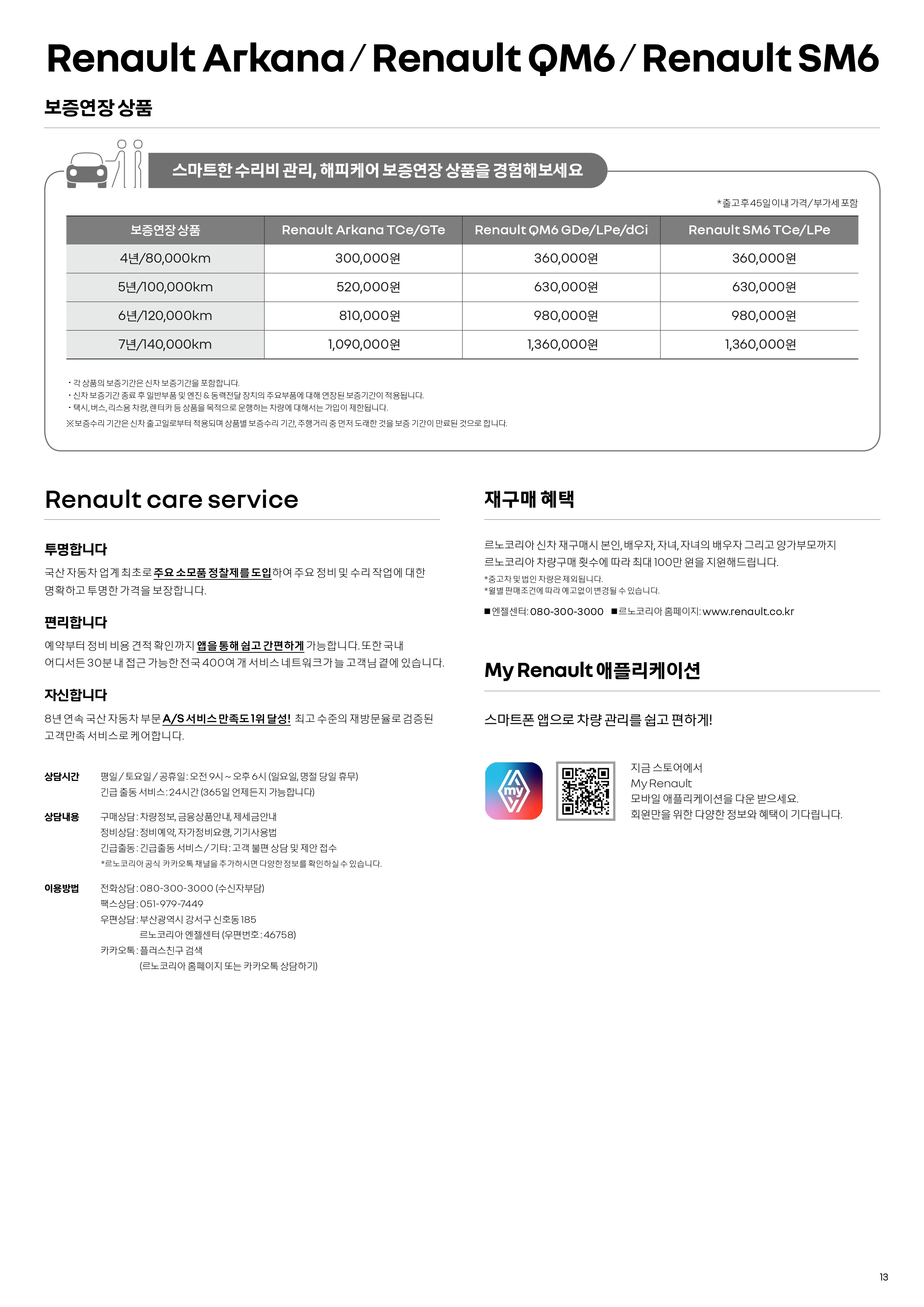 마지막으로 르노 차종들의 보증연장 가격표입니다.