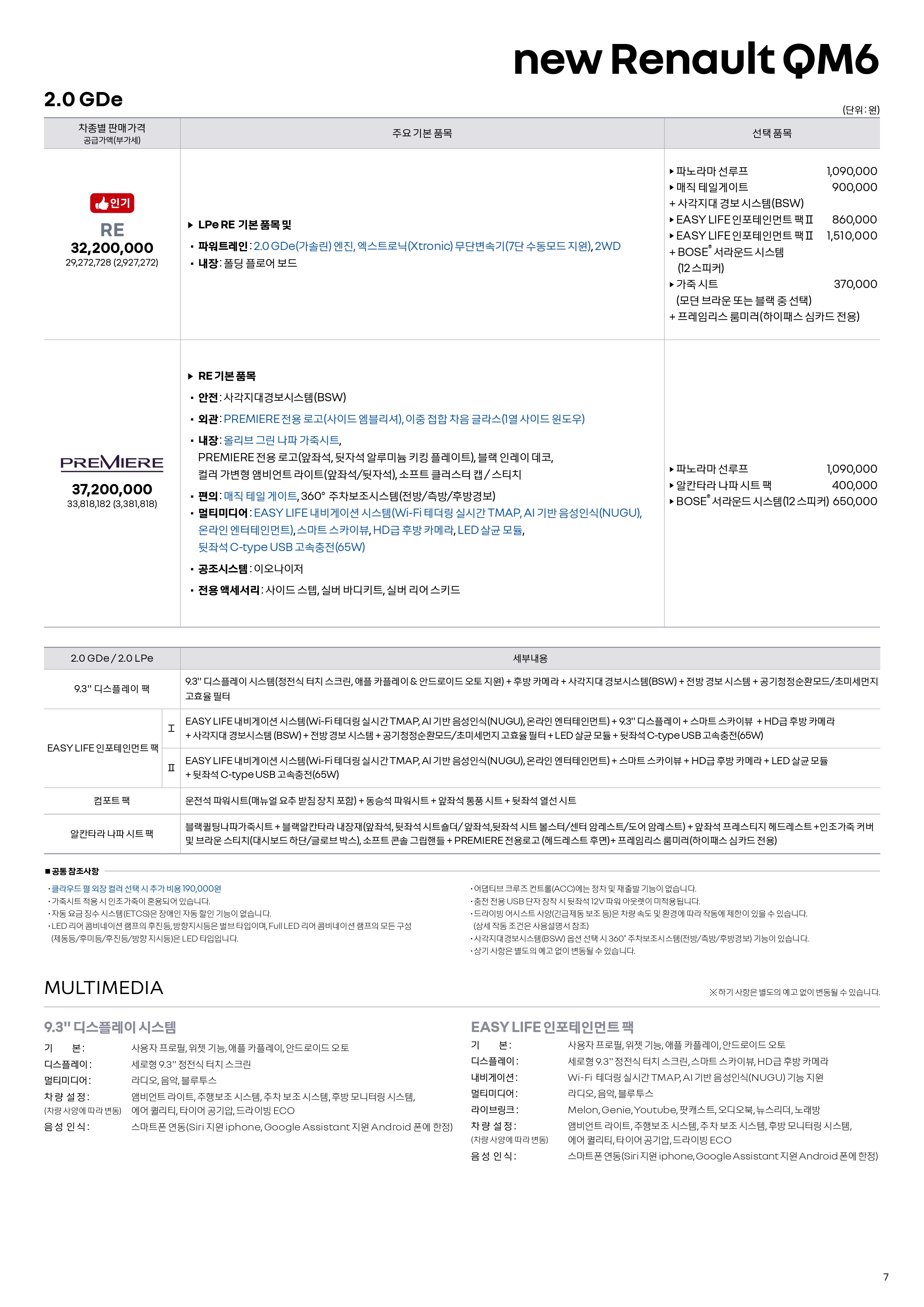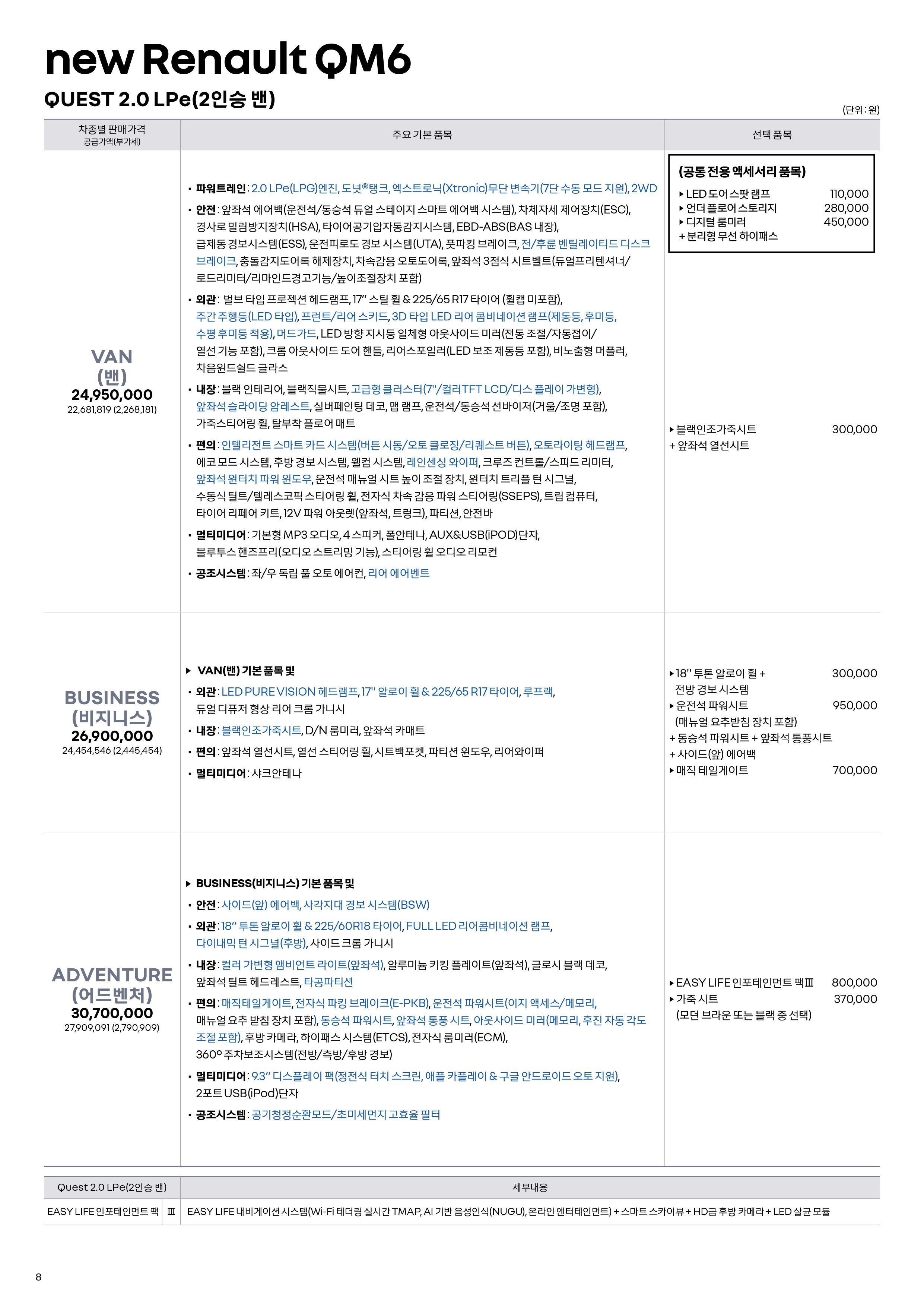 아르카나와는 달리, 차명은 그대로 QM6를 사용하고, 가격 변동도 트림별로 다른것이 특징입니다.