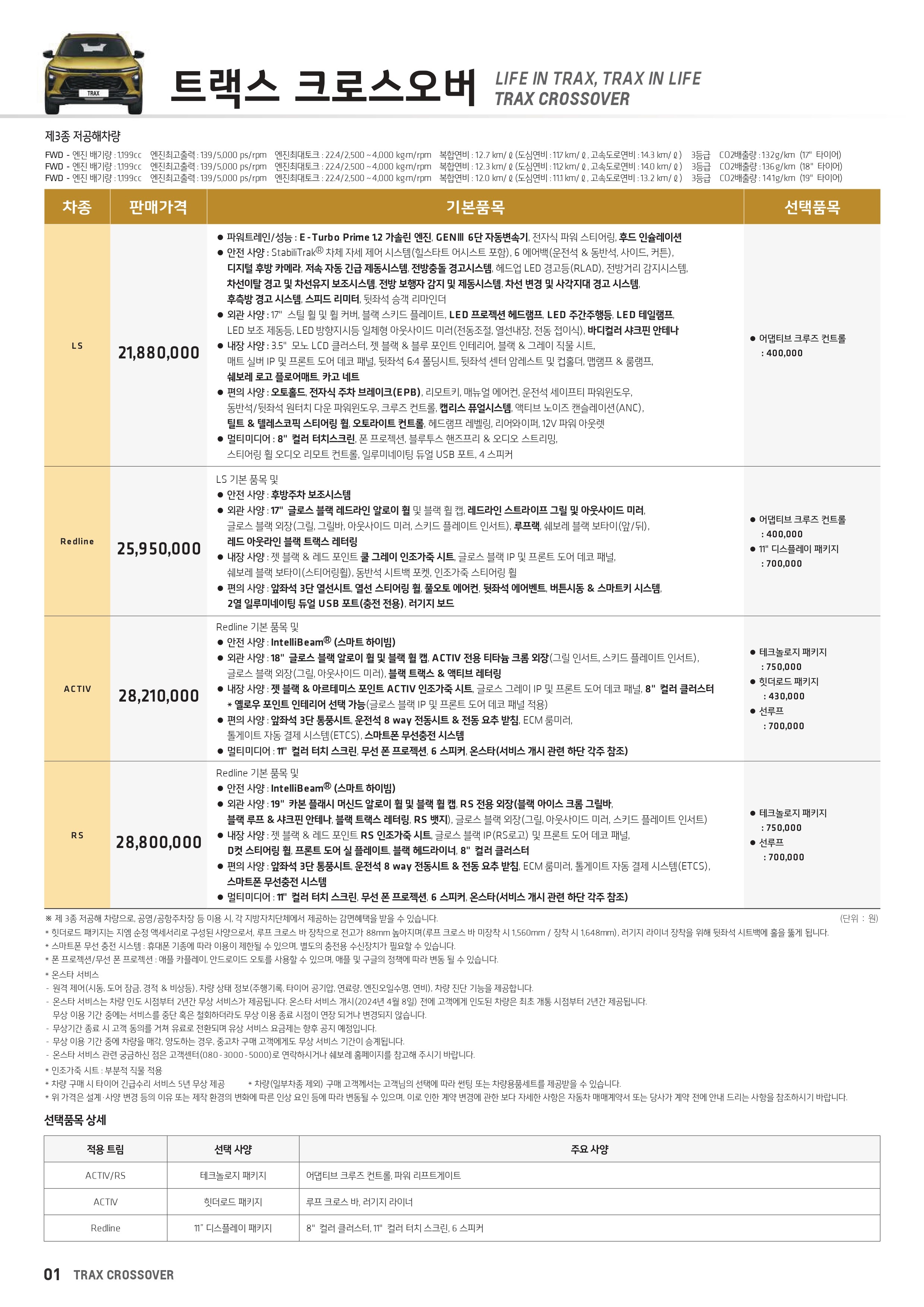 앞서 말씀드린 것과 같이, 트랙스의 가격표가 변경되었는데, 24.5년형까지 있던 LT 플러스 트림이 삭제되고, 레드라인 트림이 추가가 되었습니다.