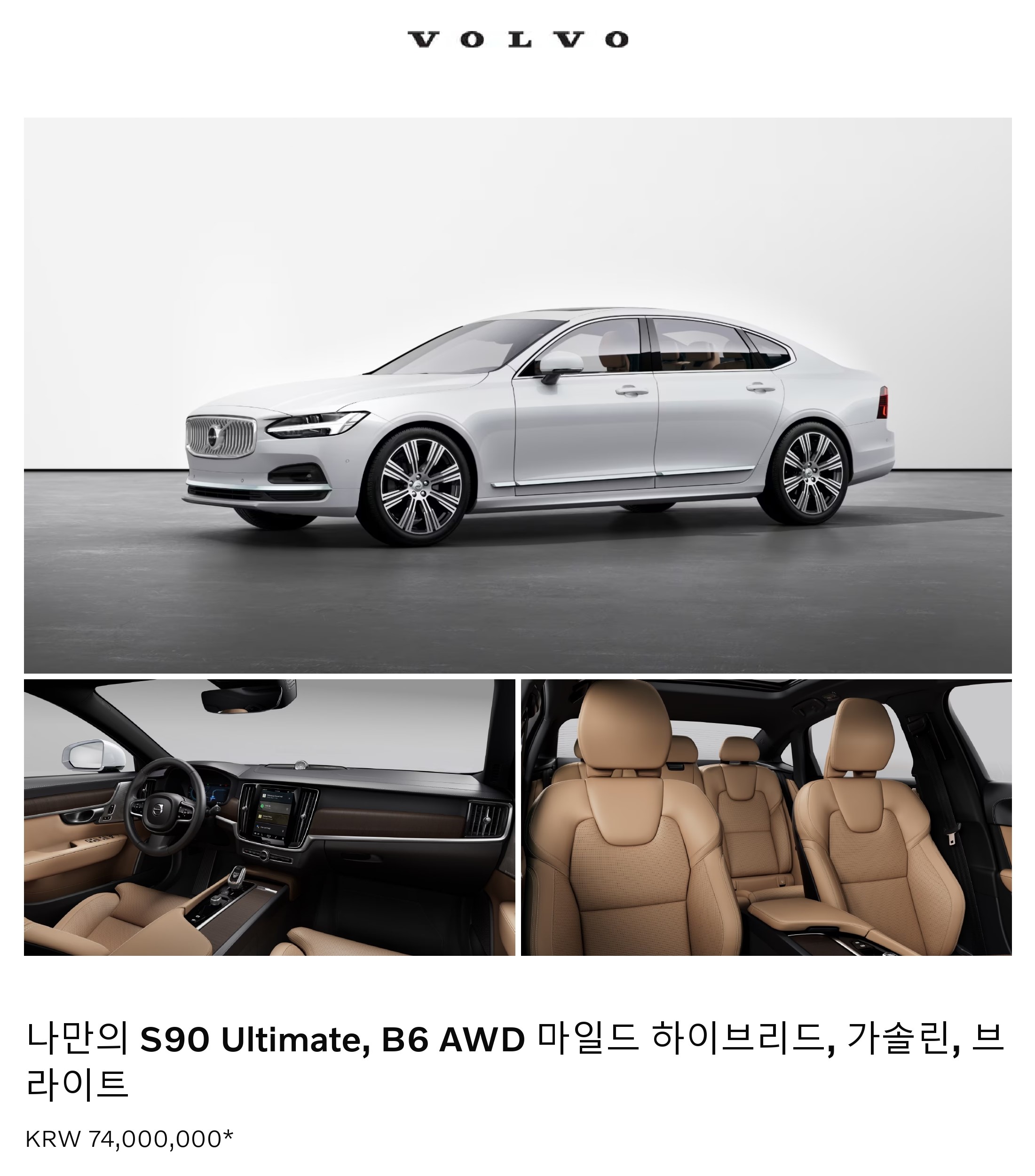 S90 B6 AWD 얼티메이트 브라이트 : 7,400 만원