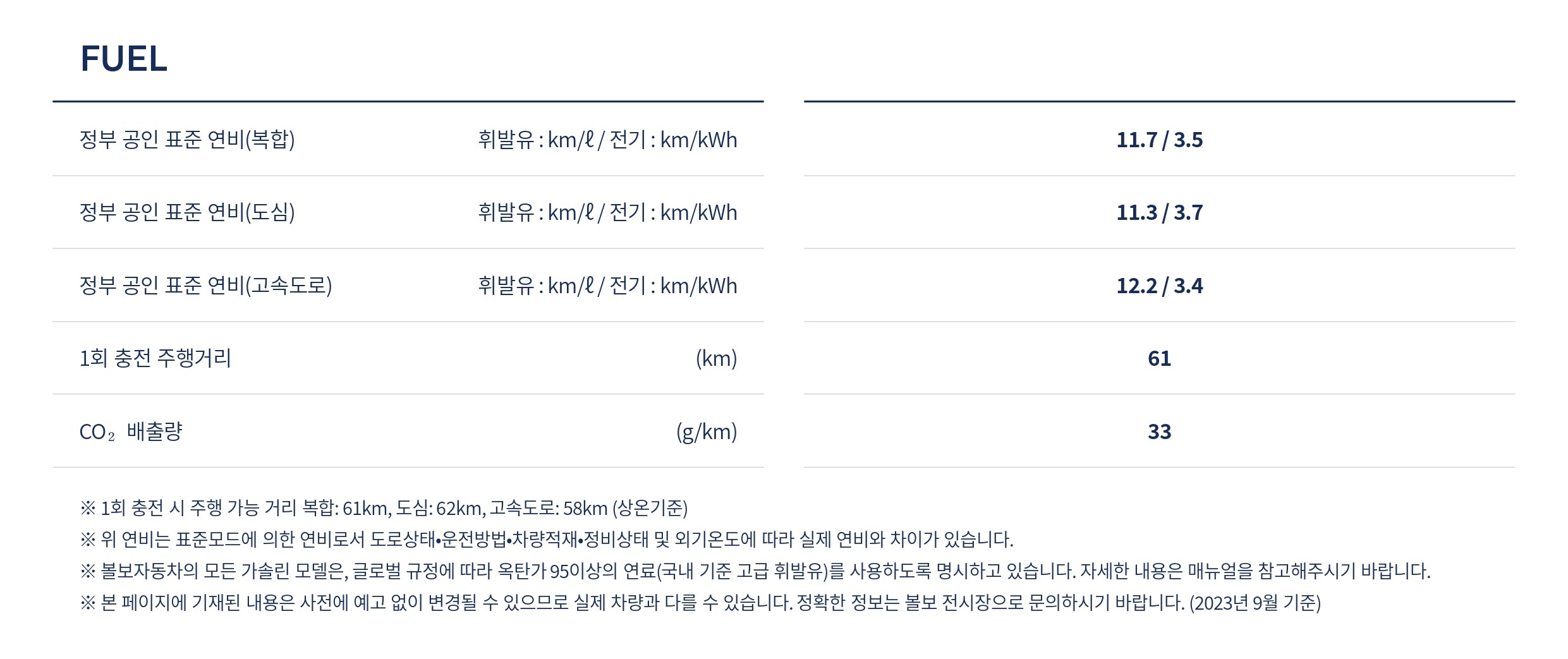옵션표와는 달리, MHEV(B5, B6) 와 PHEV(T8) 제원표가 분리되어 있습니다.