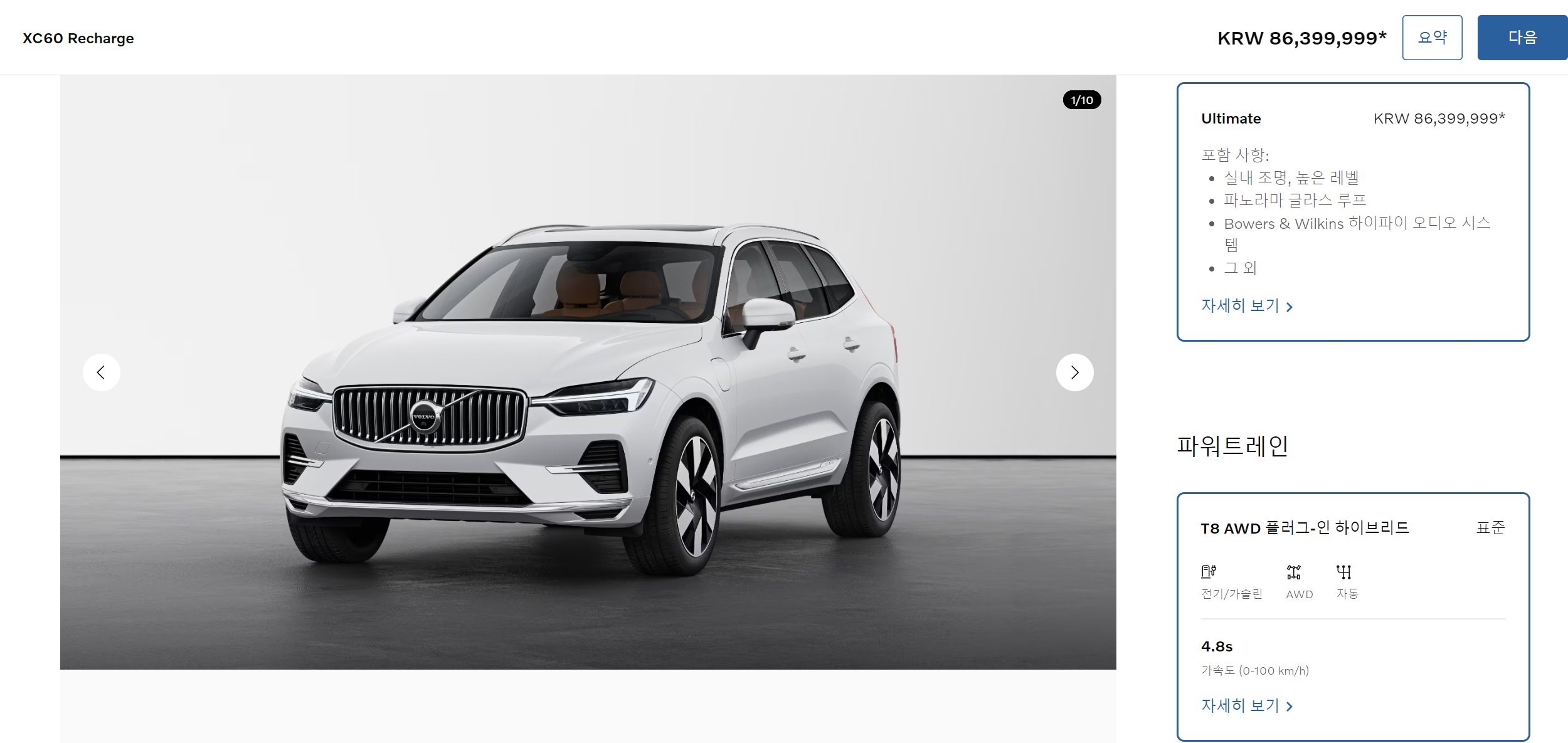 XC60 T8 얼티메이트 브라이트 : 8,640 만원