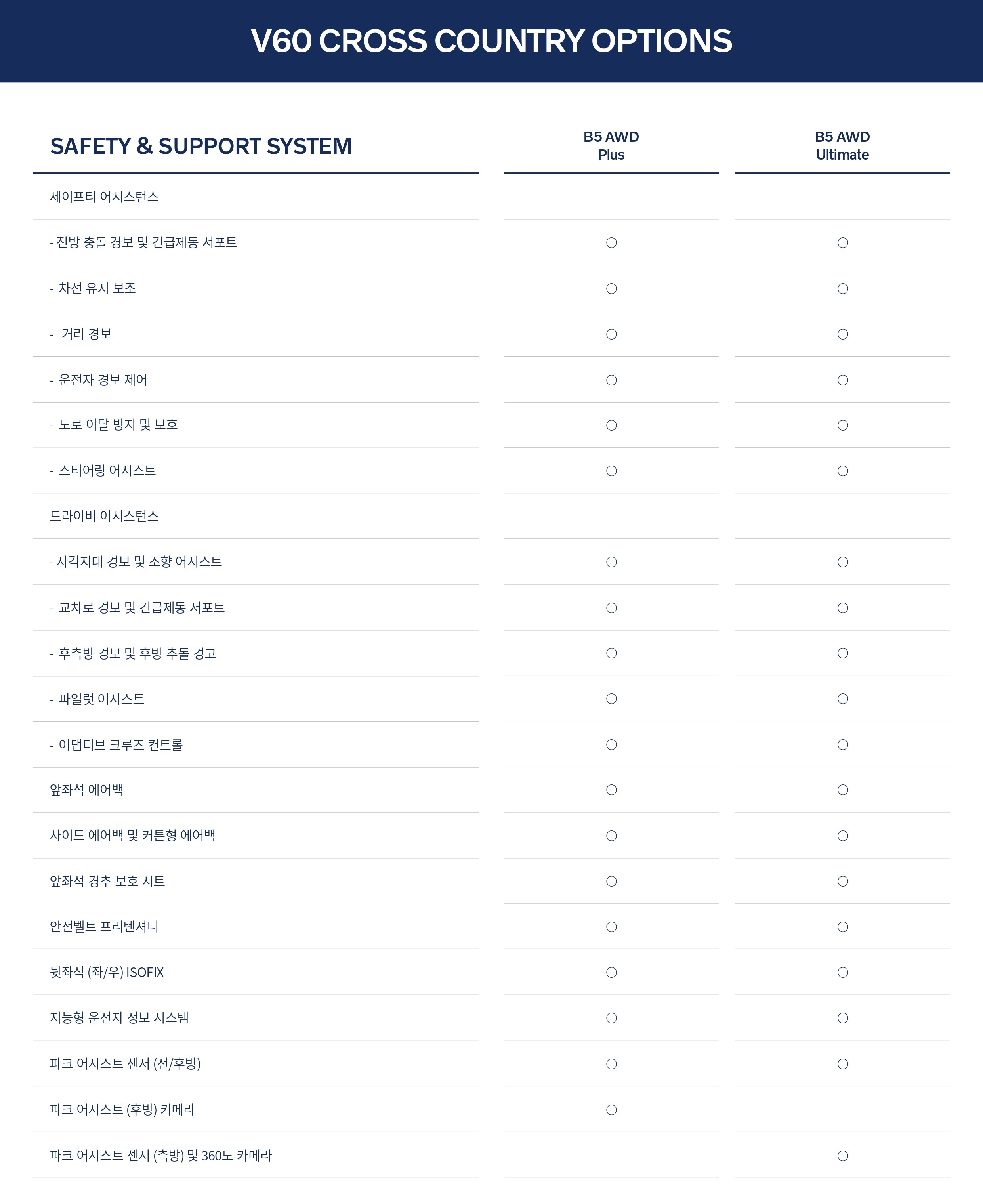 다음은 V60 옵션표를 한 번 살펴볼까요?