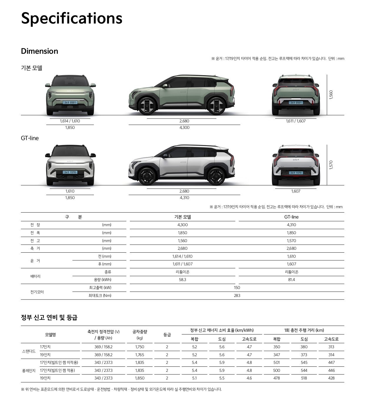 정말 순수하게, 주행가능거리에 따라 어떤 모델을 구매하실지 정하시면 되는 구조로 되어 있습니다.