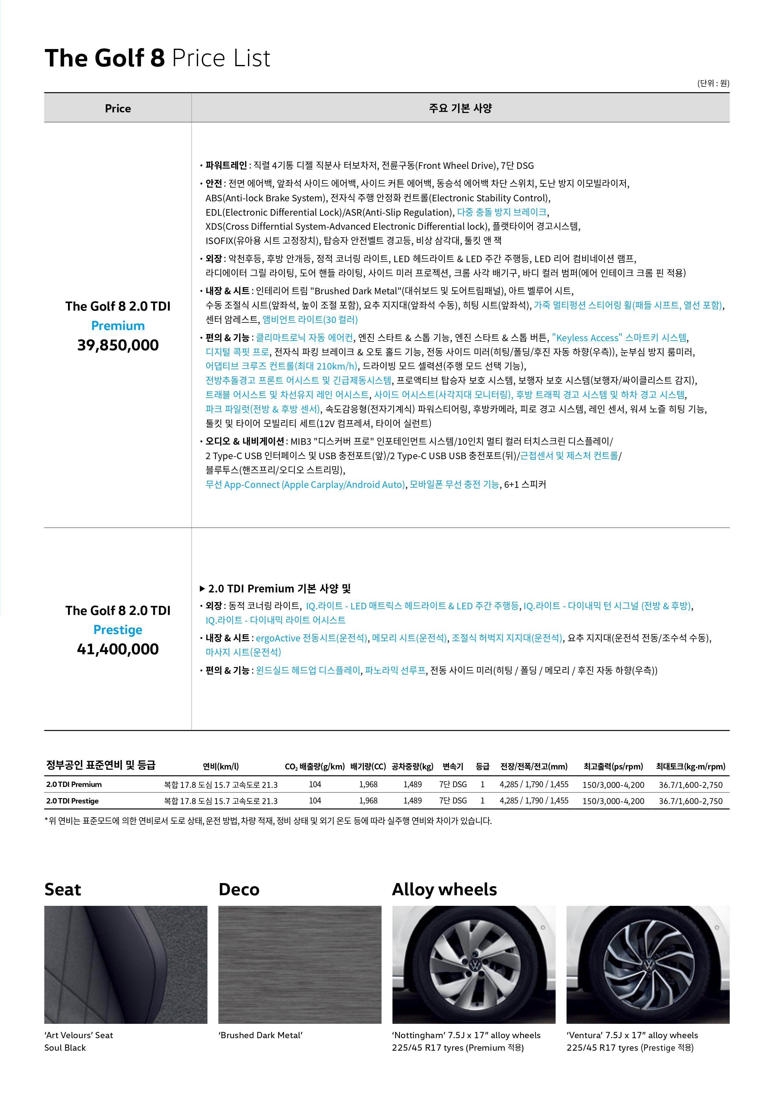 골프 2.0 TDI 프리미엄 : 3,958 만원