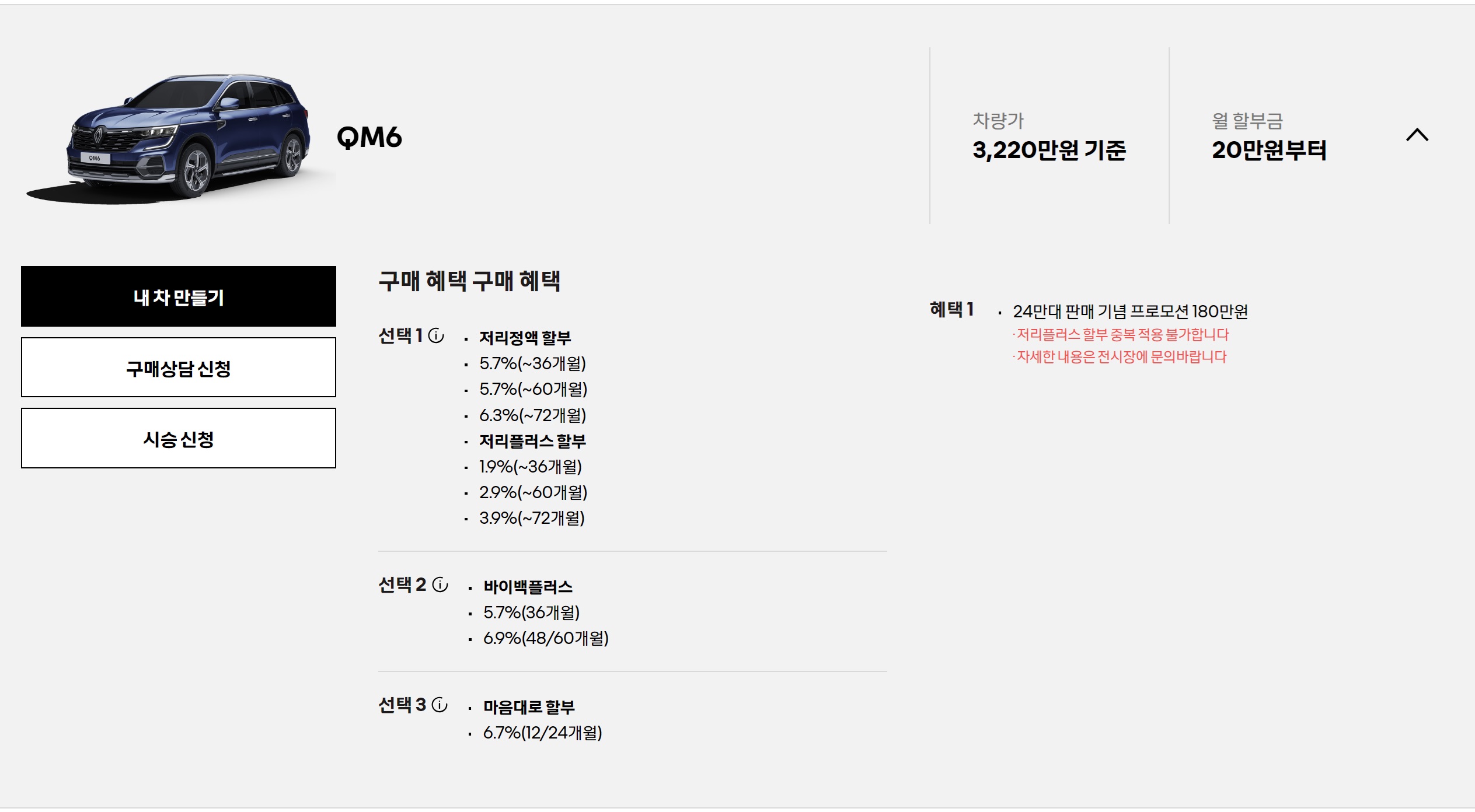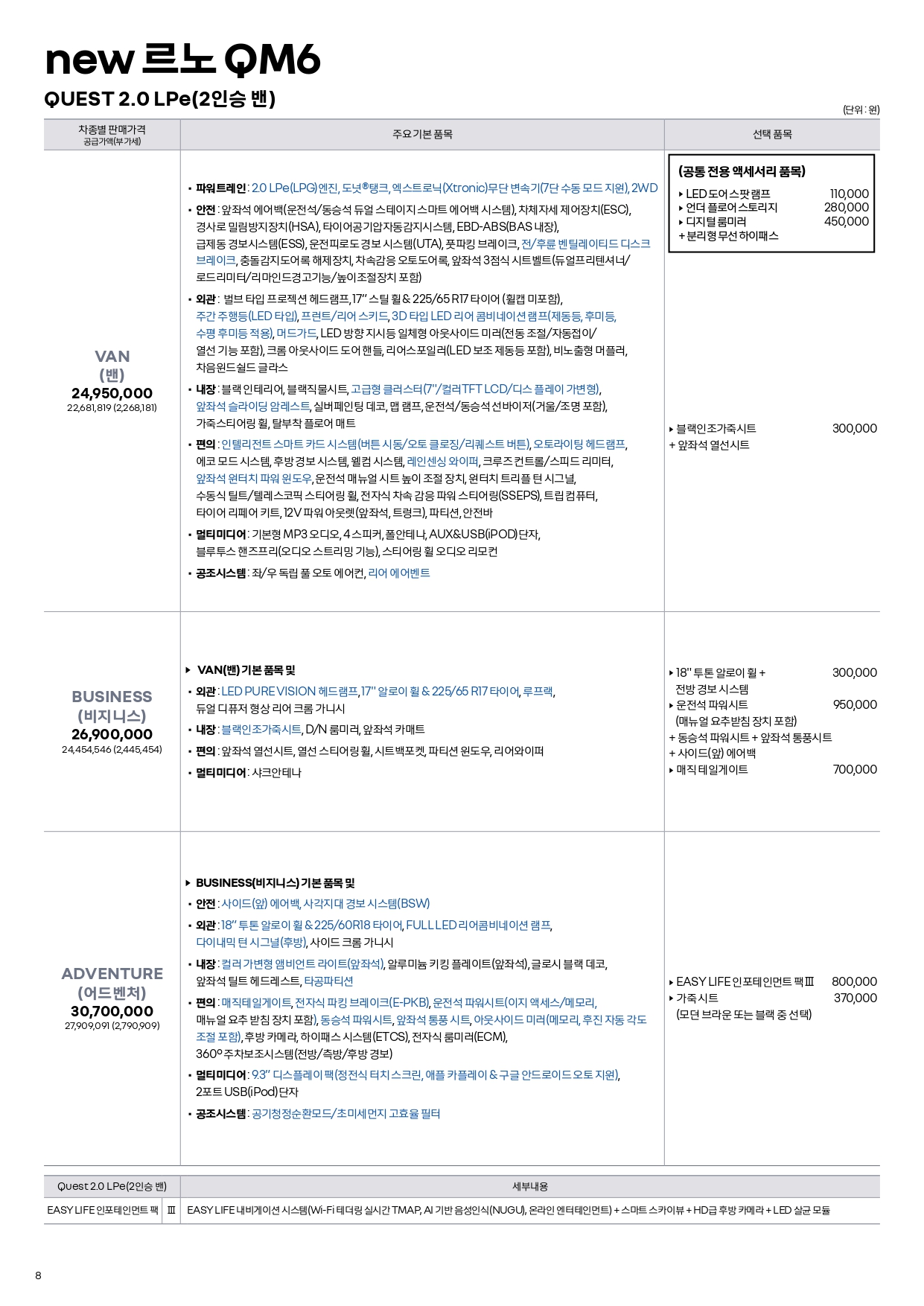 QM6 승용형 모델과 마찬가지로, 가격 변화는 없고, 프로모션만 변화되었습니다.