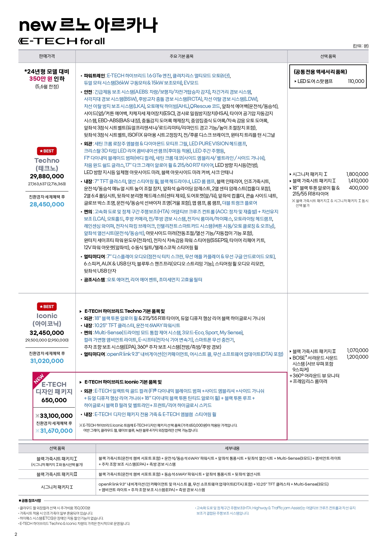 차량 가격 자체의 변화는 없지만, 프로모션이 상당히 바뀐 것이 특징입니다.
