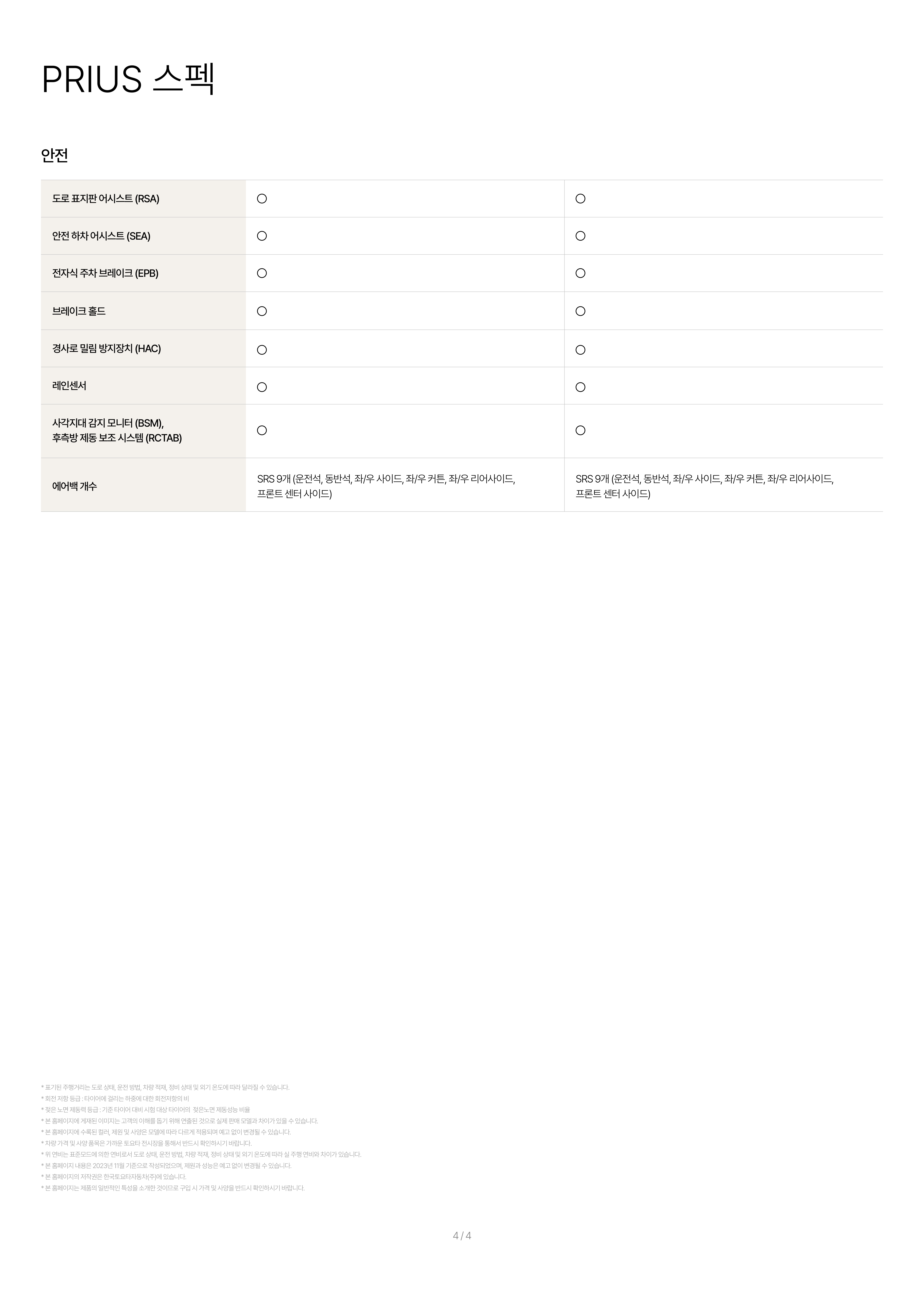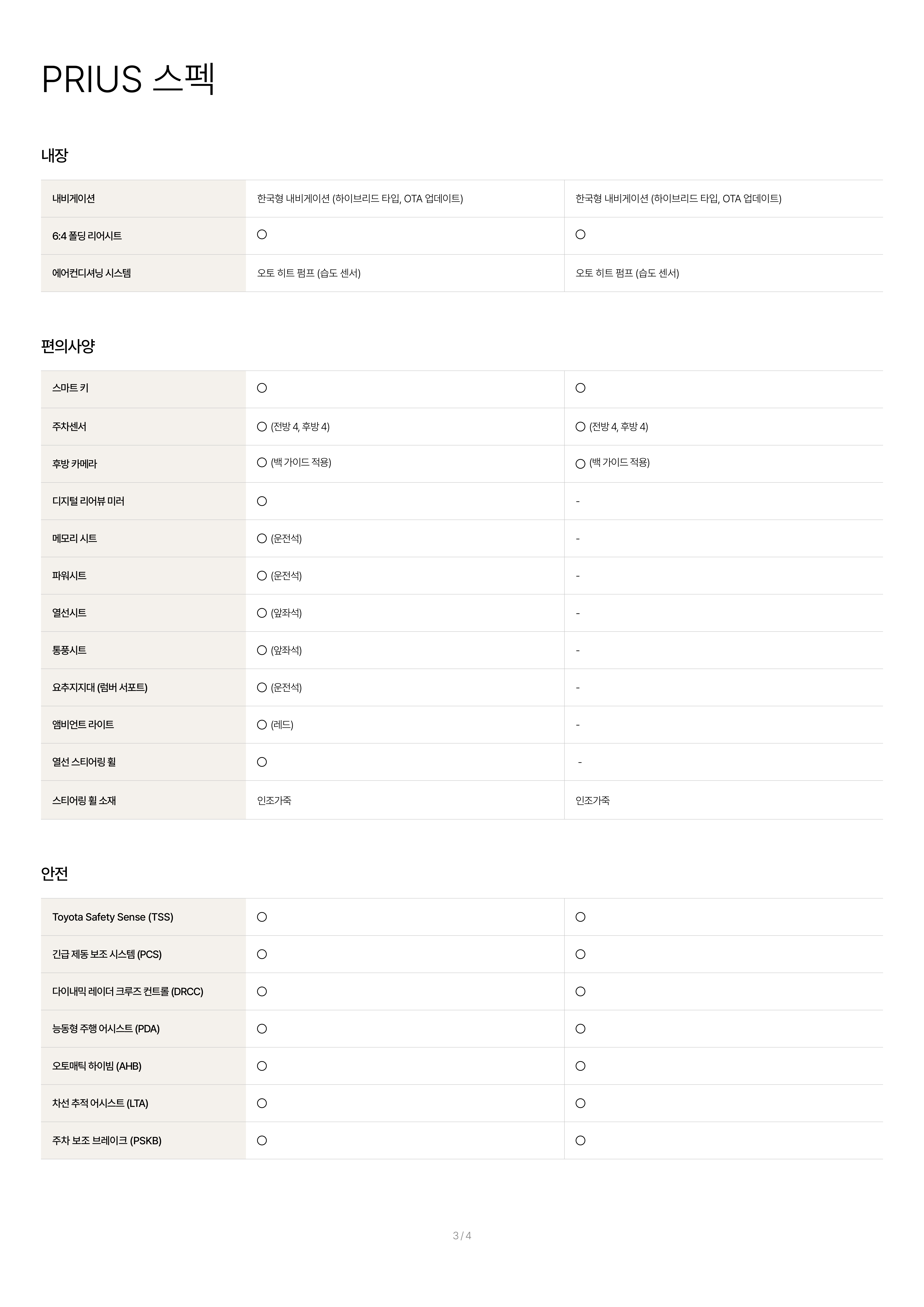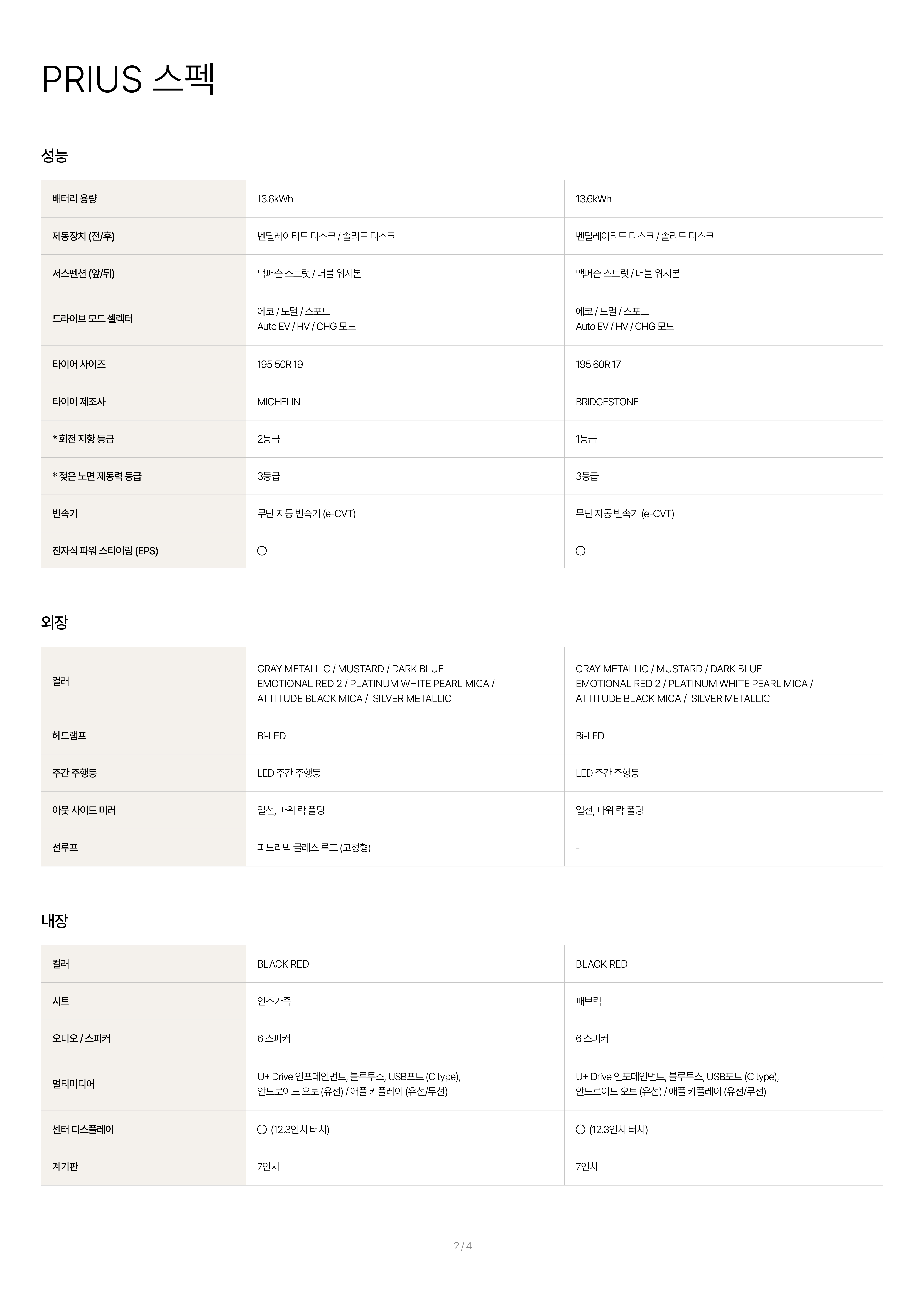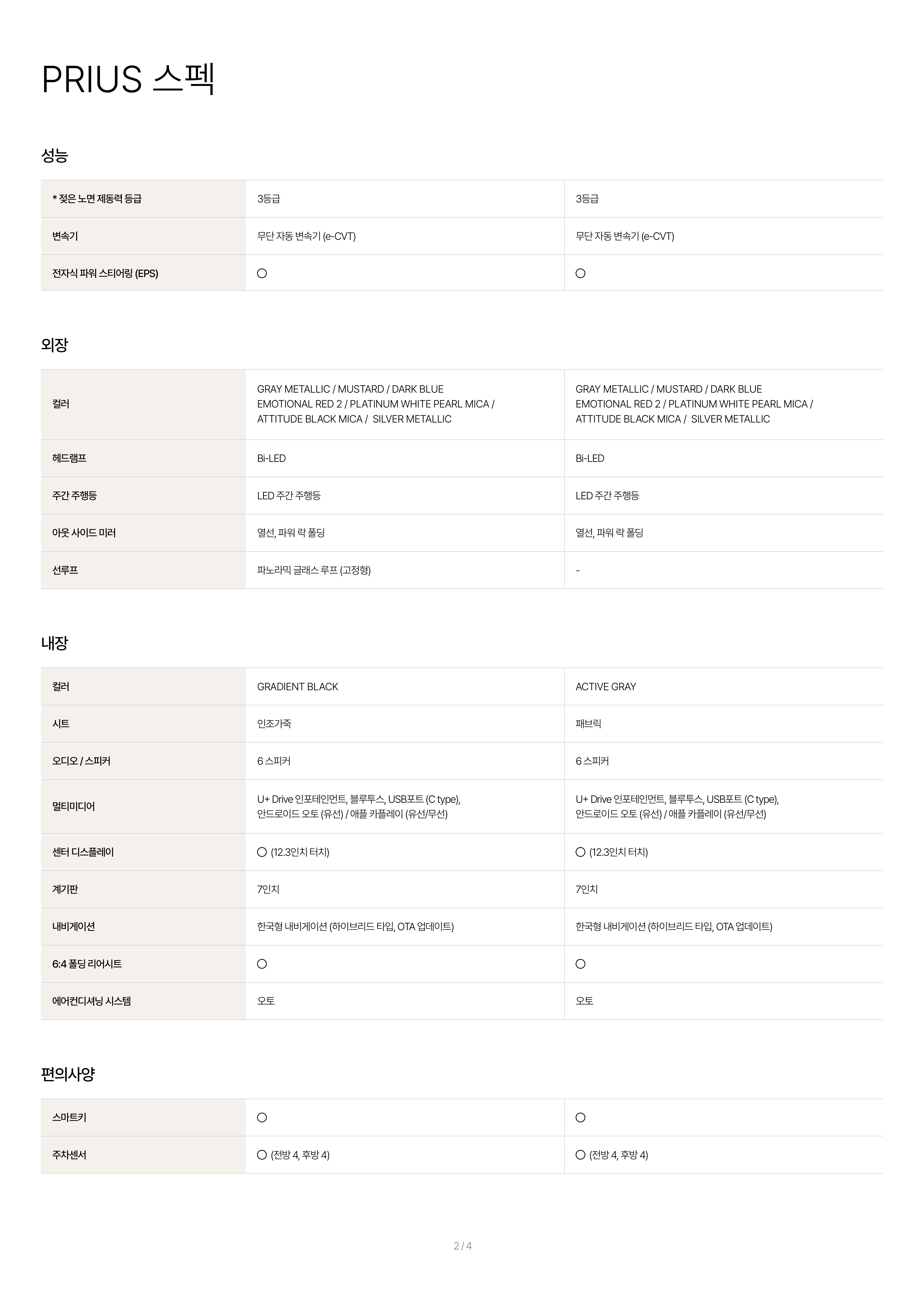 ▼ 2024 프리우스 PHEV 옵션표 ▼