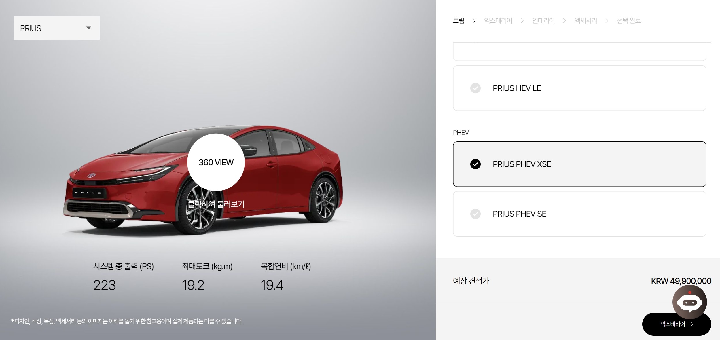 사실, 프리우스 HEV는 어느 트림을 할지 고민을 좀 할 것 같지만, PHEV 모델은 그냥 360만원을 더 내고 XSE 사양을 하는 것도 괜찮아 보입니다.