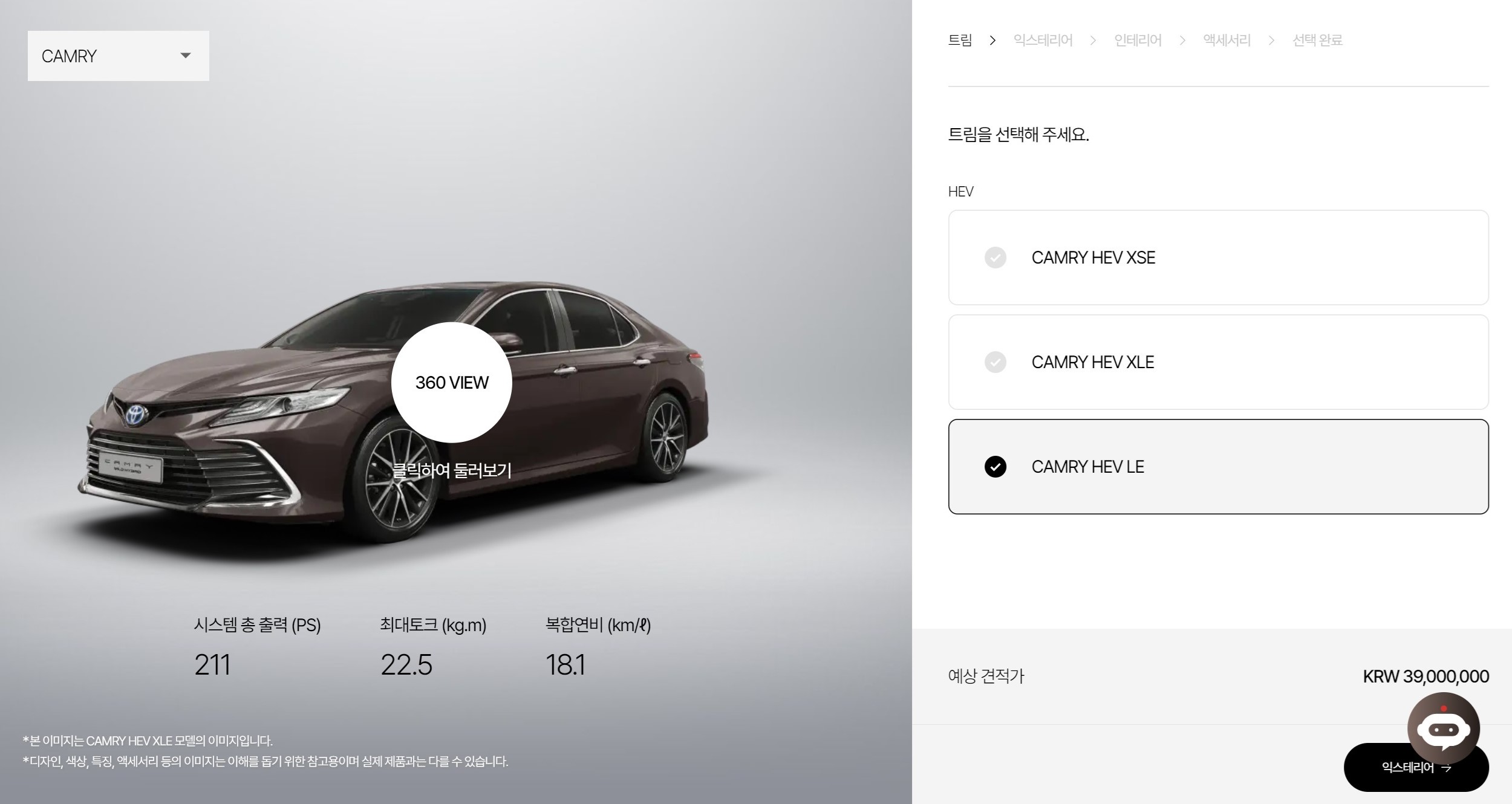 그리고, XSE 모델도 궁금해하시는 분들도 많이 계실 것 같은데, XSE는 XLE의 고급 사양에 스포츠한 내/외관 디자인을 적용한 사양입니다.