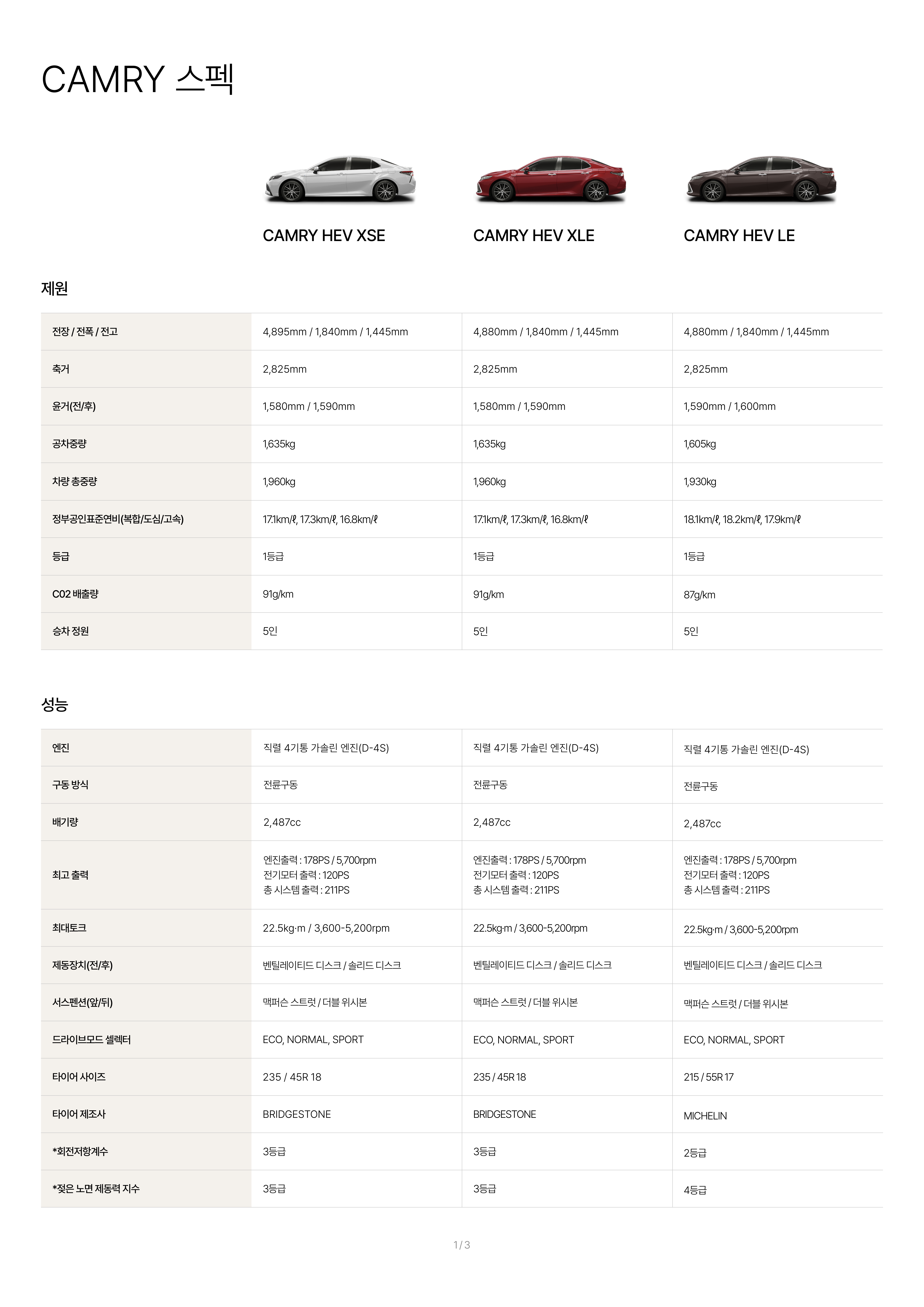 우선 국내에 수입되는 캠리 모델 먼저 짧게 한 번 살펴보도록 하겠습니다.