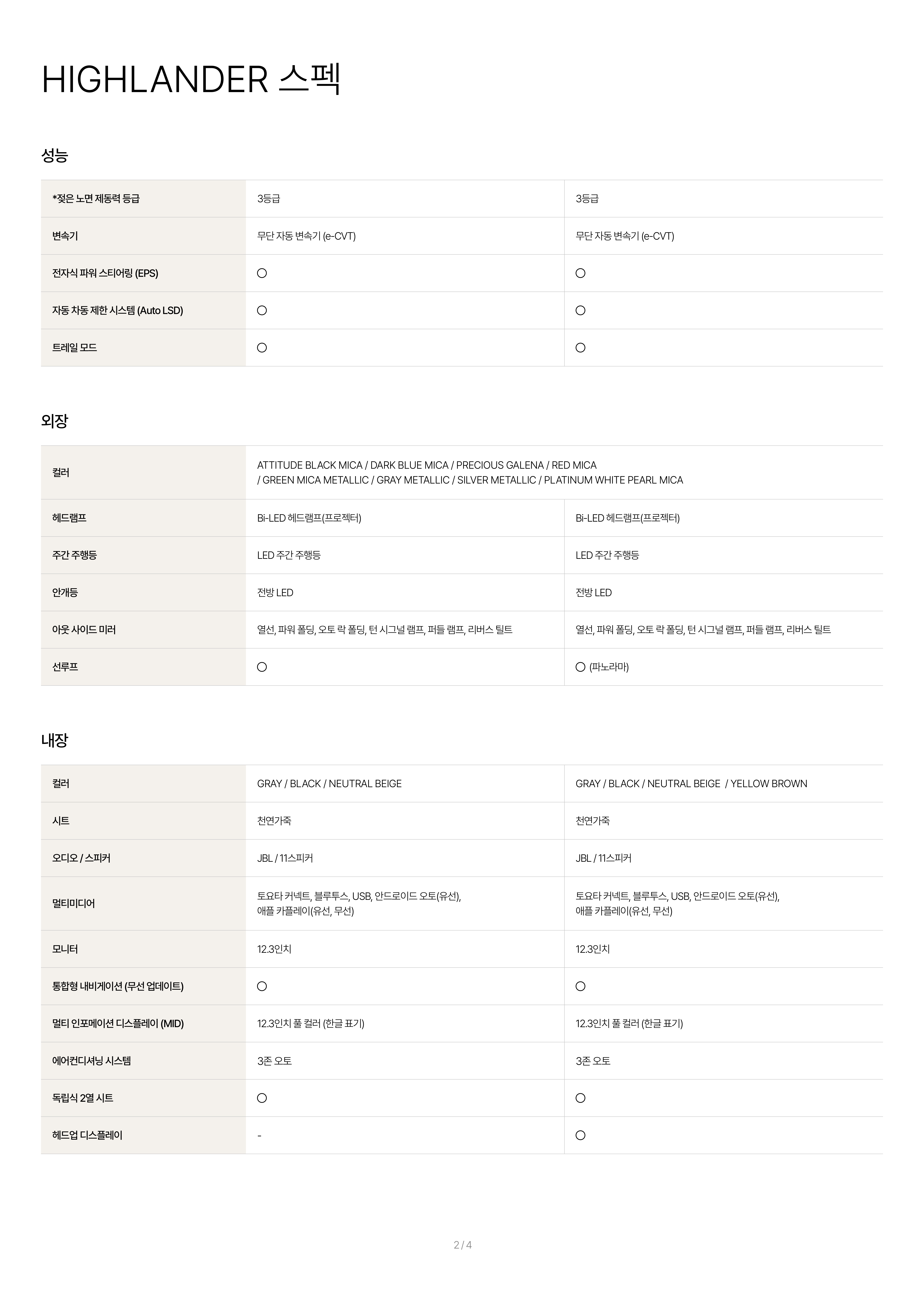 북미 시장에는 2.4 터보 엔진이 달린 하이랜더도 있는데, 하이브리드만 수입이 되는 점은 조금 아쉽긴 하네요.