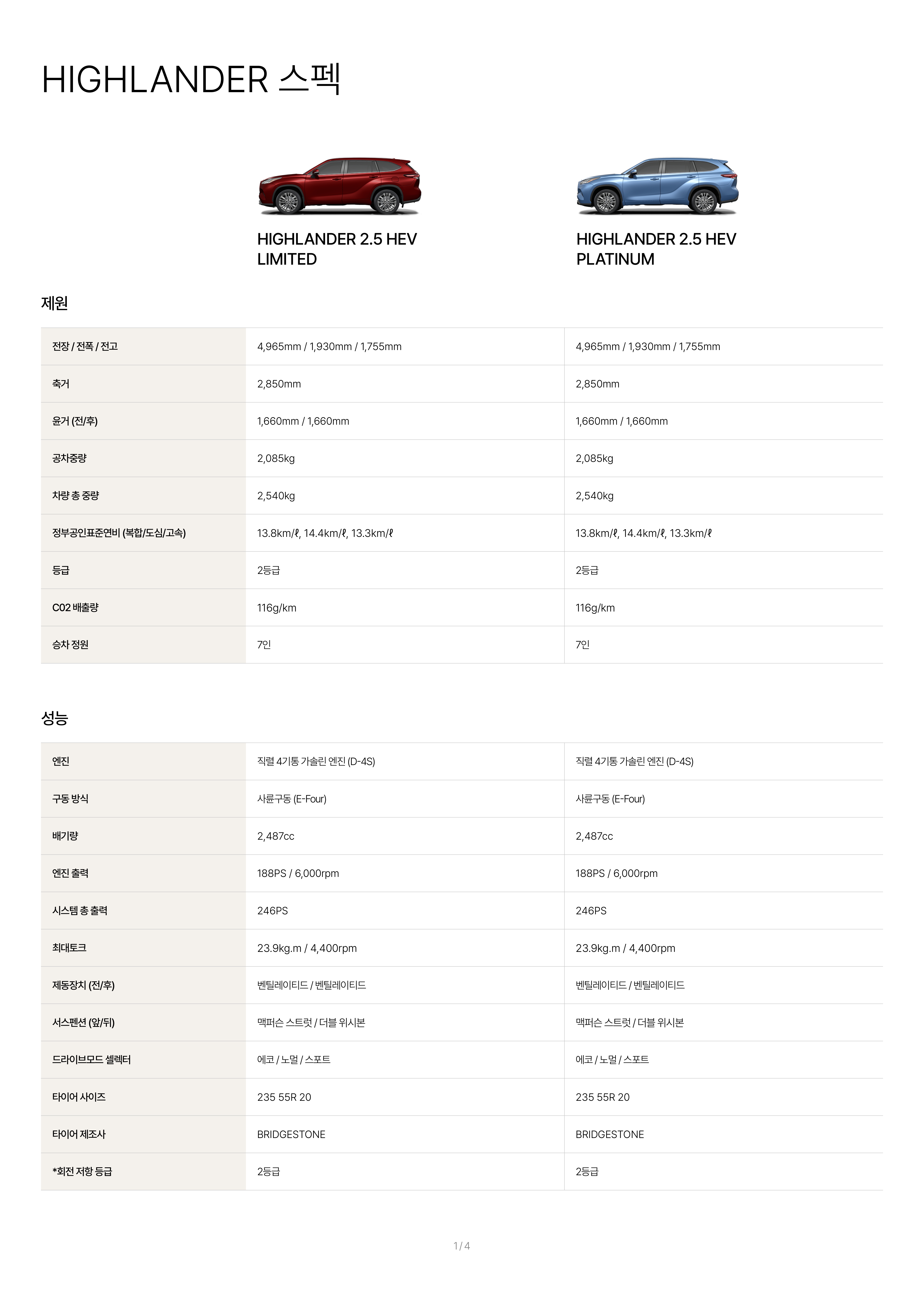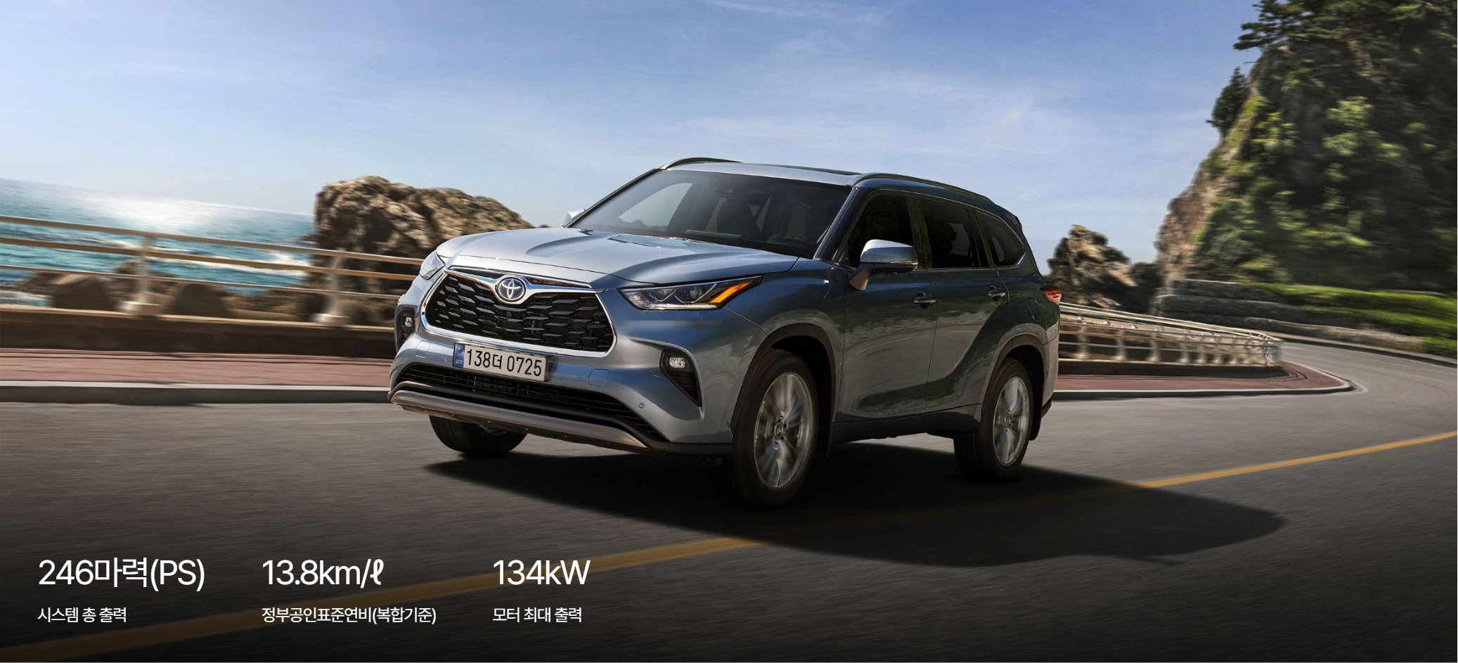 국내 수입되는 하이랜더는 하이브리드 단일 파워트레인으로 수입이 되고 있습니다.