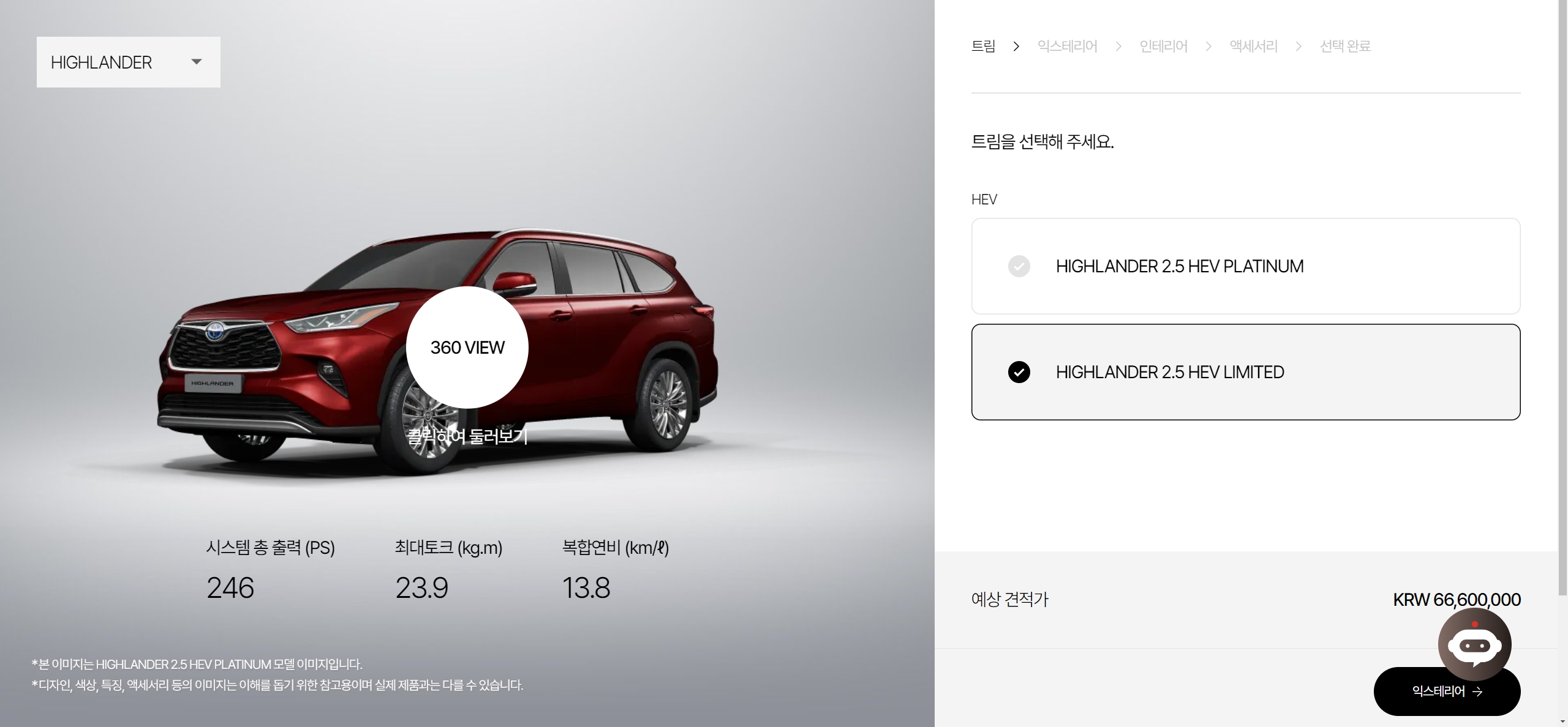 2023 토요타 하이랜더 리미티드 : 6,660 만원