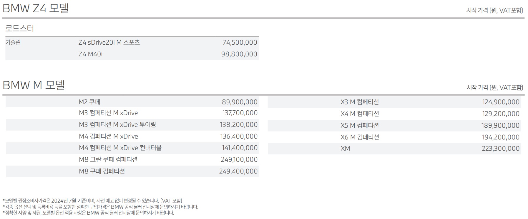오늘은 BMW에서 갓 발표한 2024년 7월 전차종 가격표를 여러분들께 공유하는 시간을 가져볼까 합니다.