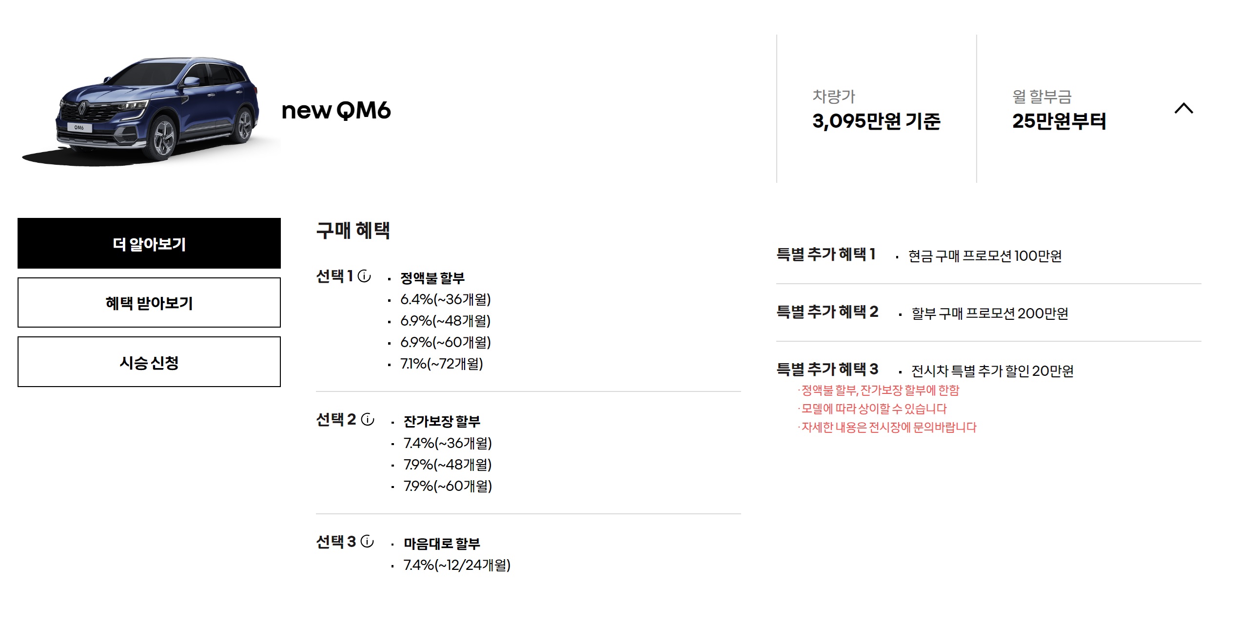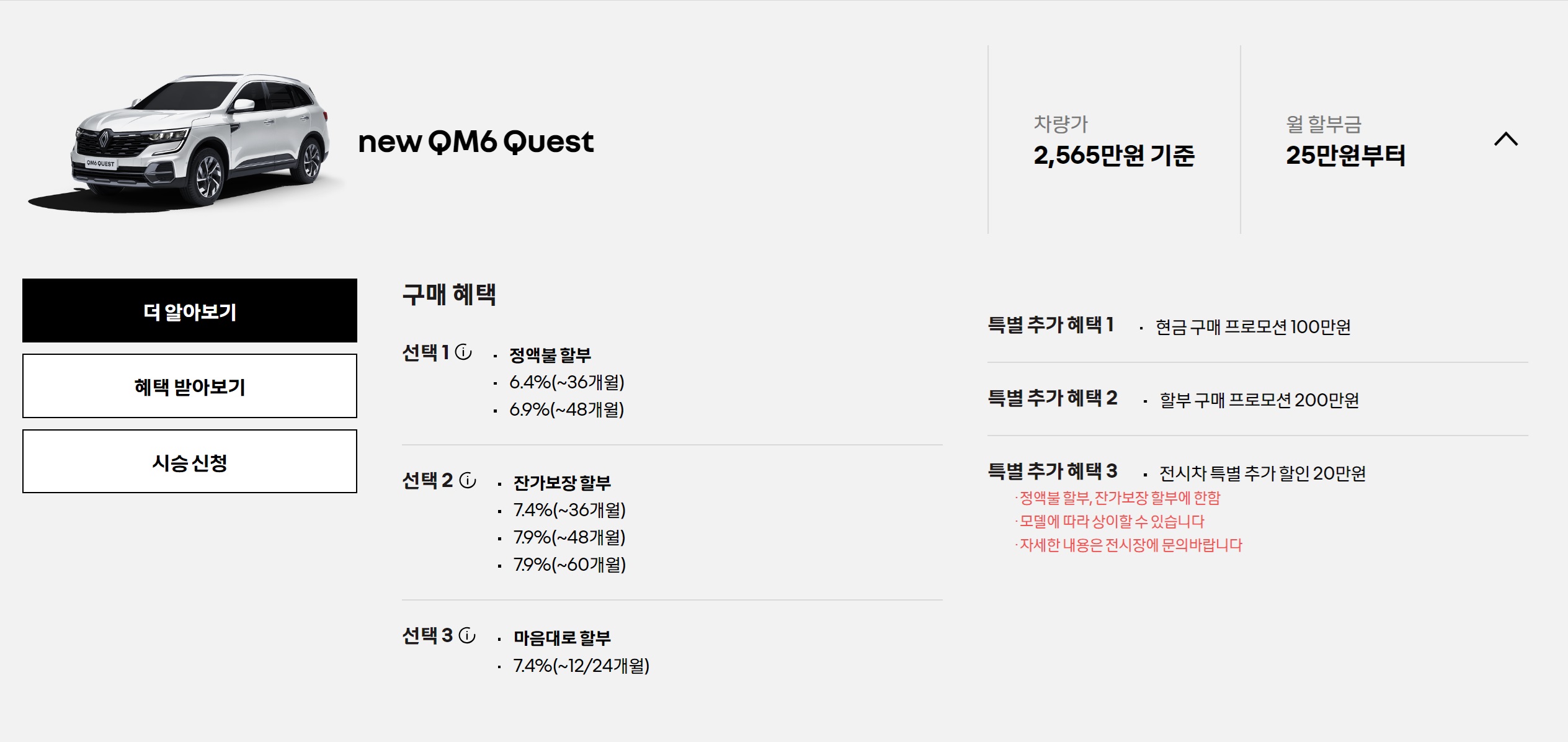 개인적으로 그랑 콜레오스 가격도 마음에 들지 않는데, QM6 가격표에다가 프로모션 장난까지 친 걸 보니, 더욱 르노가 싫어집니다.