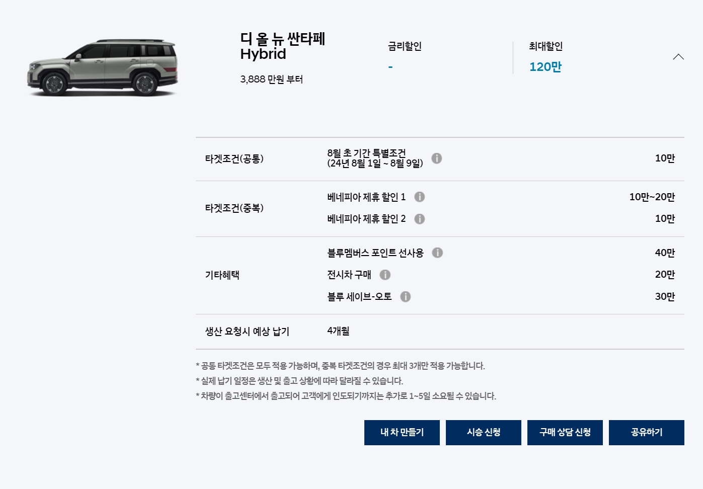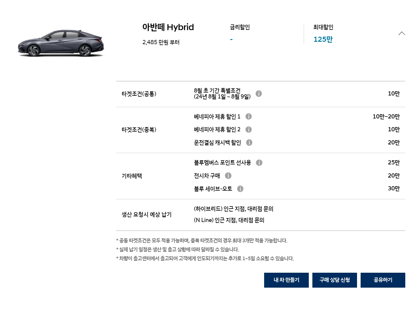 오늘은 2024년 8월 현대자동차 판매조건 ( 구매혜택 ) 및 생산 납기를 여러분들과 함께 공유해 보고자 합니다.