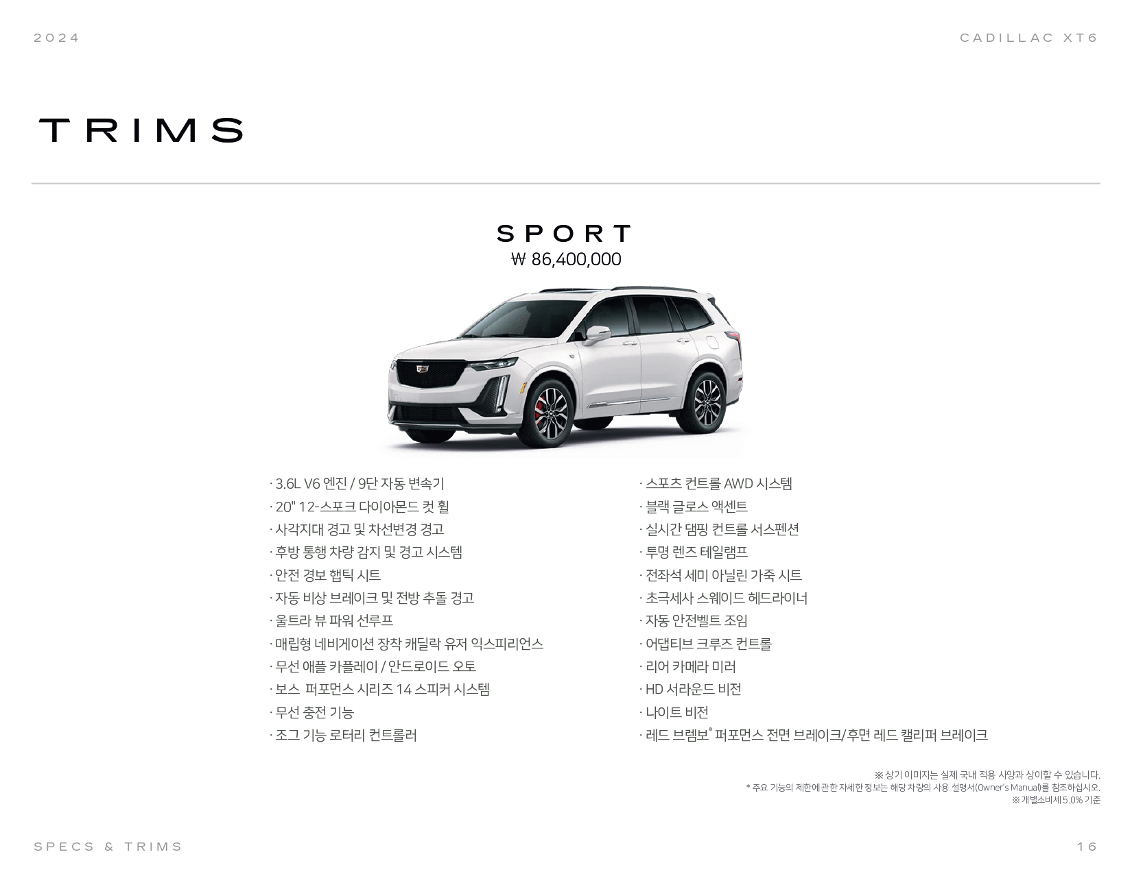 오늘은 다소 비인기 차종인 2024 캐딜락 XT6 의 가격 및 옵션표를 공유하는 시간을 가져볼까 합니다.
