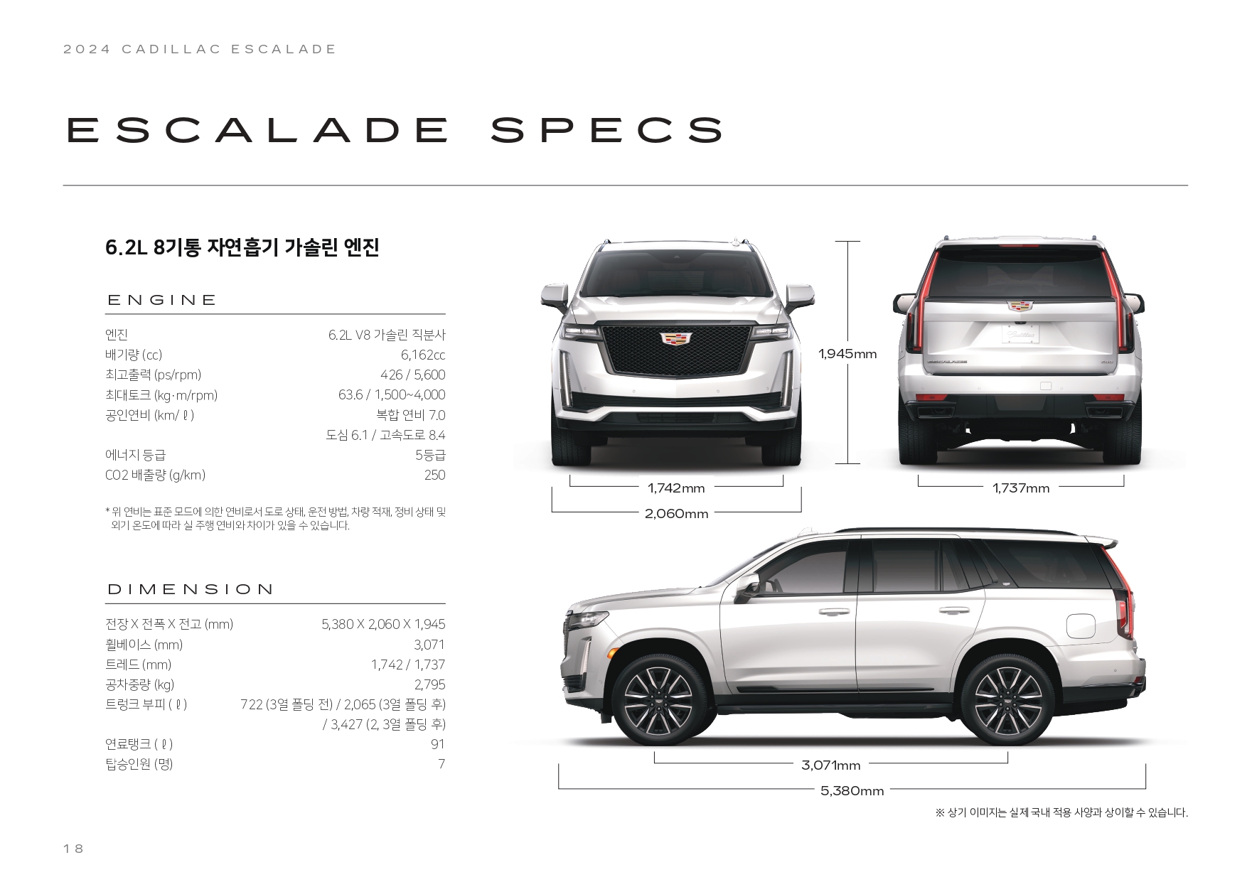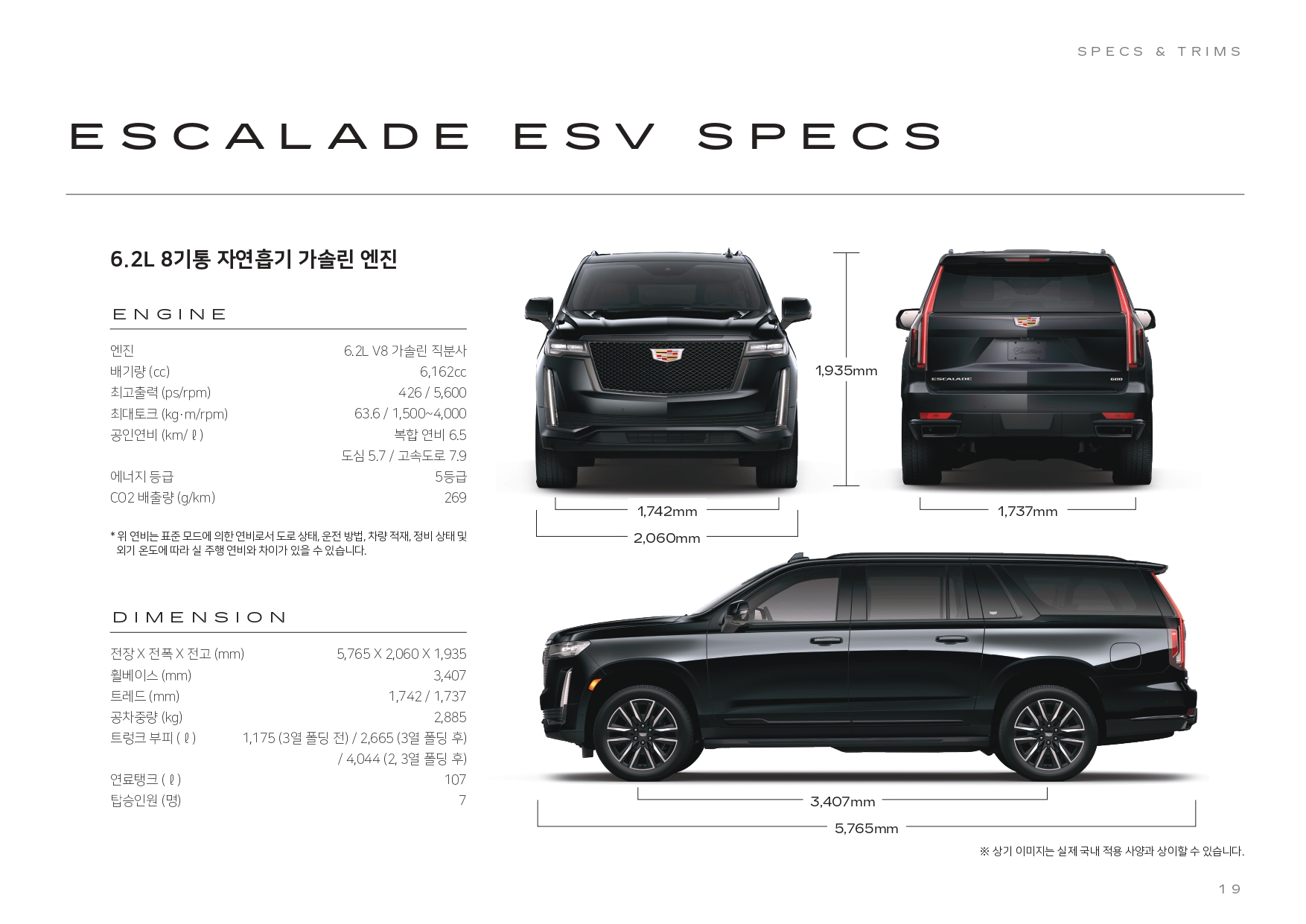 표준형 모델인 에스컬레이드, 그리고 롱바디 모델인 에스컬레이드 ESV가 존재합니다.