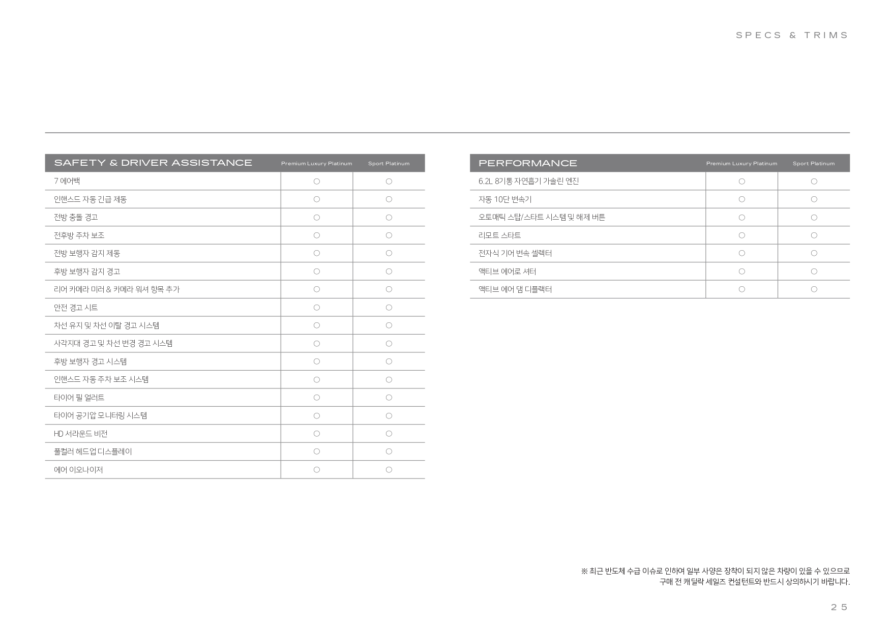 프리미엄 럭셔리 플래티넘과 스포츠 플래티넘 두 모델 간 가격이 동일한데, 반대로 얘기하면 옵션 차이는 사실상 없다고 보시면 되고, 차이 나는 부분들은 개인의 기호 차이에 따른 정도라 보시면 됩니다.
