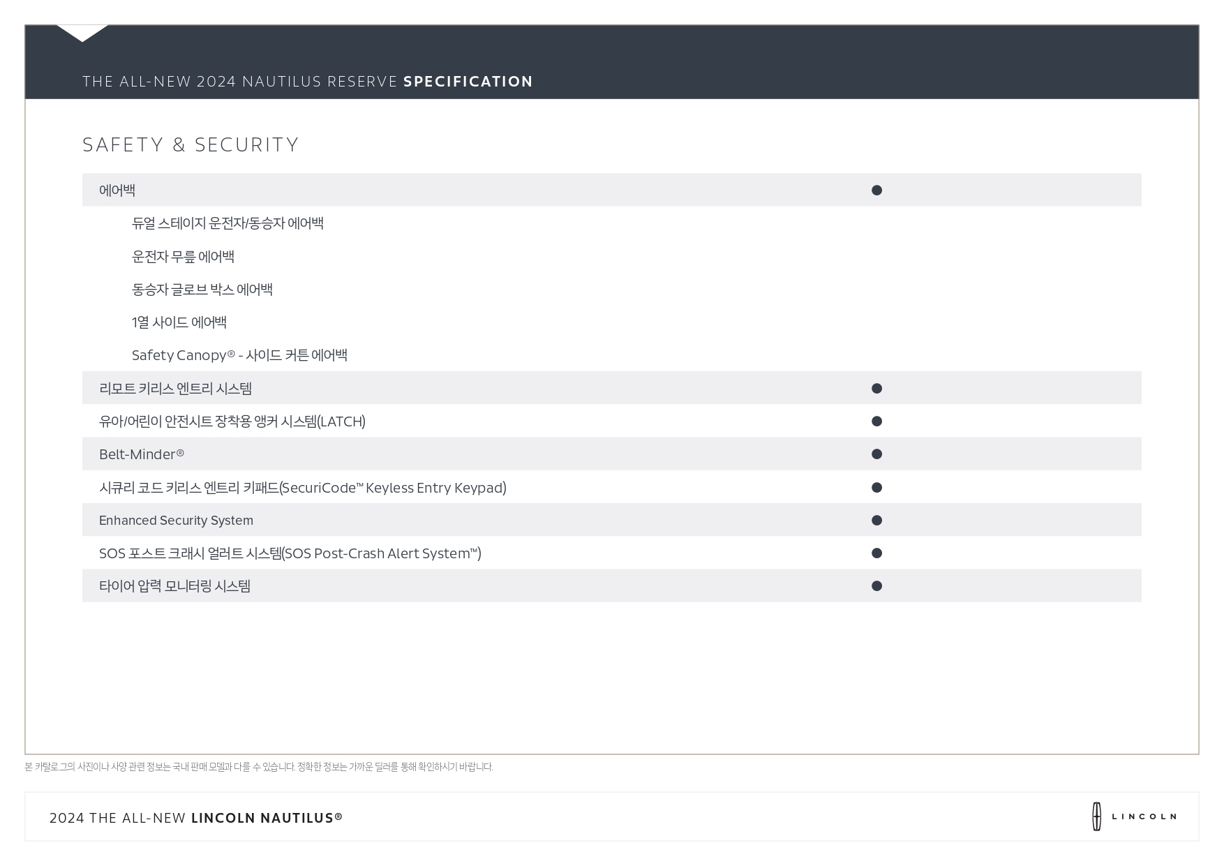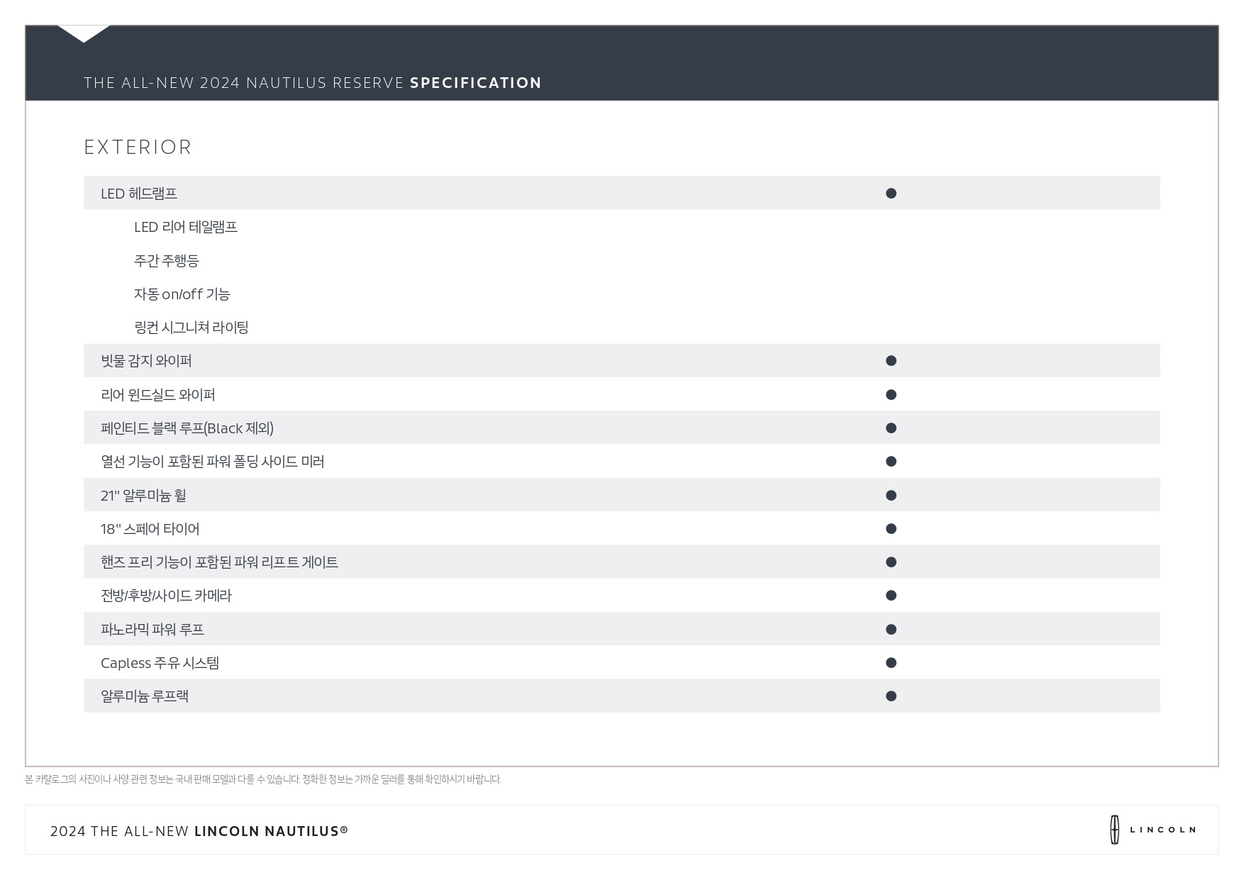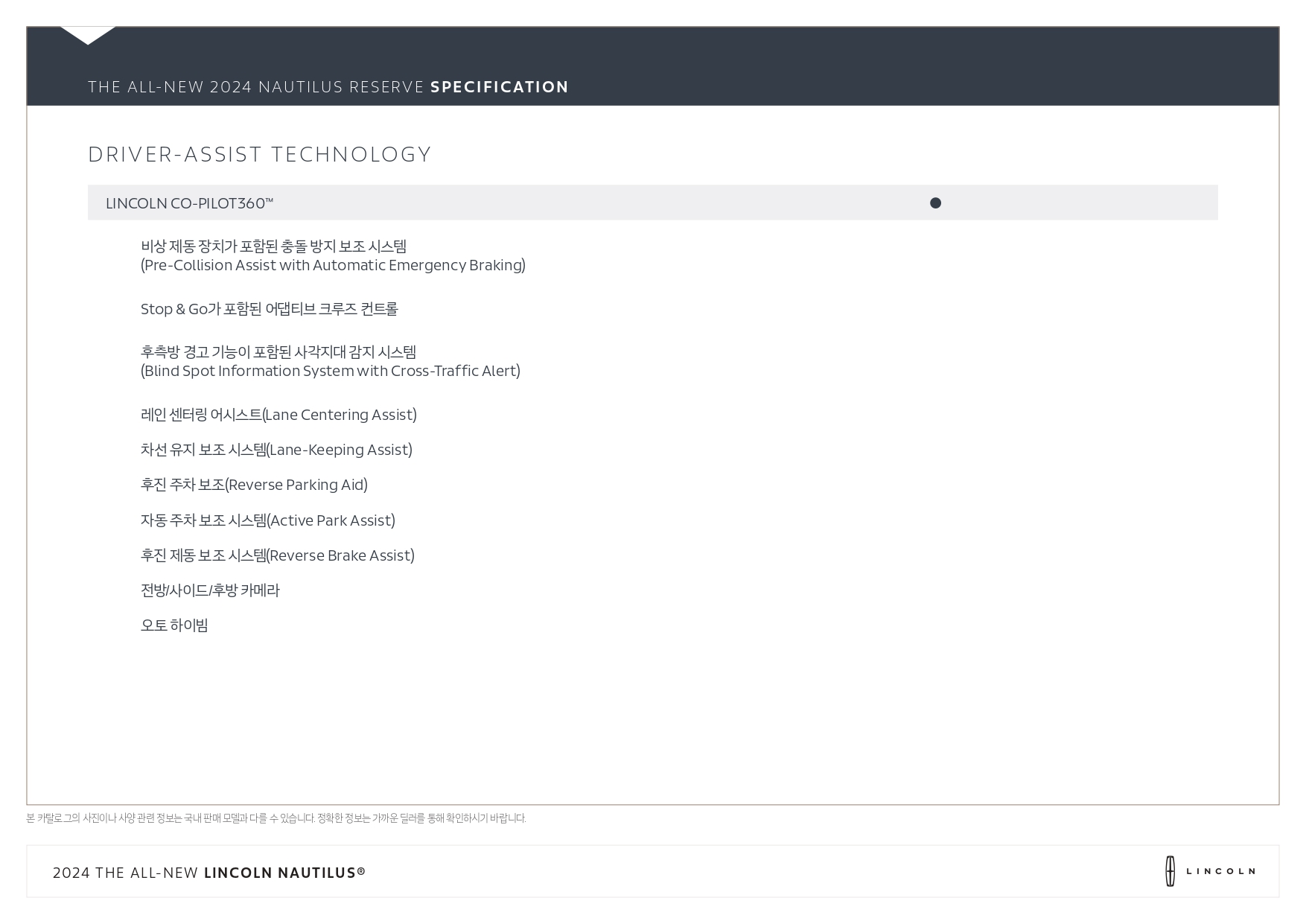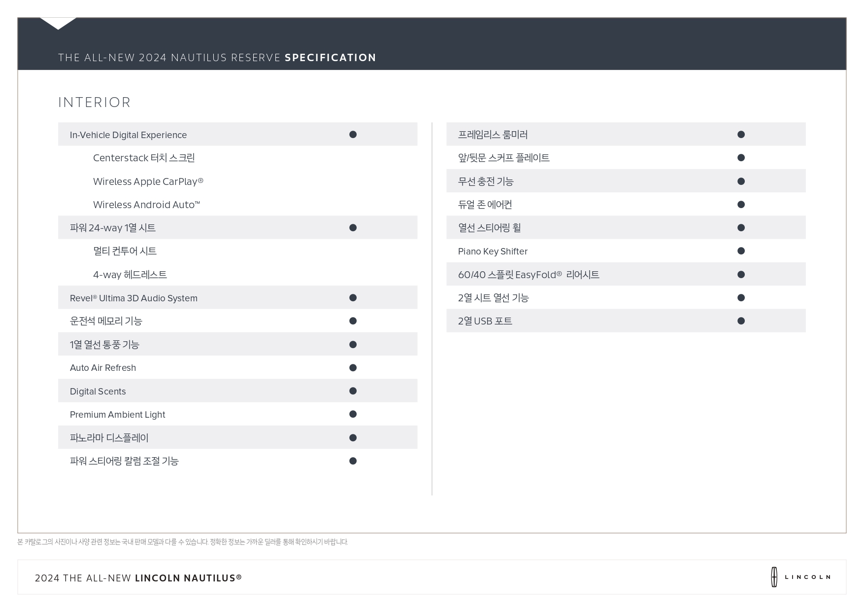 ▼ 2024 링컨 노틸러스 옵션표 ▼