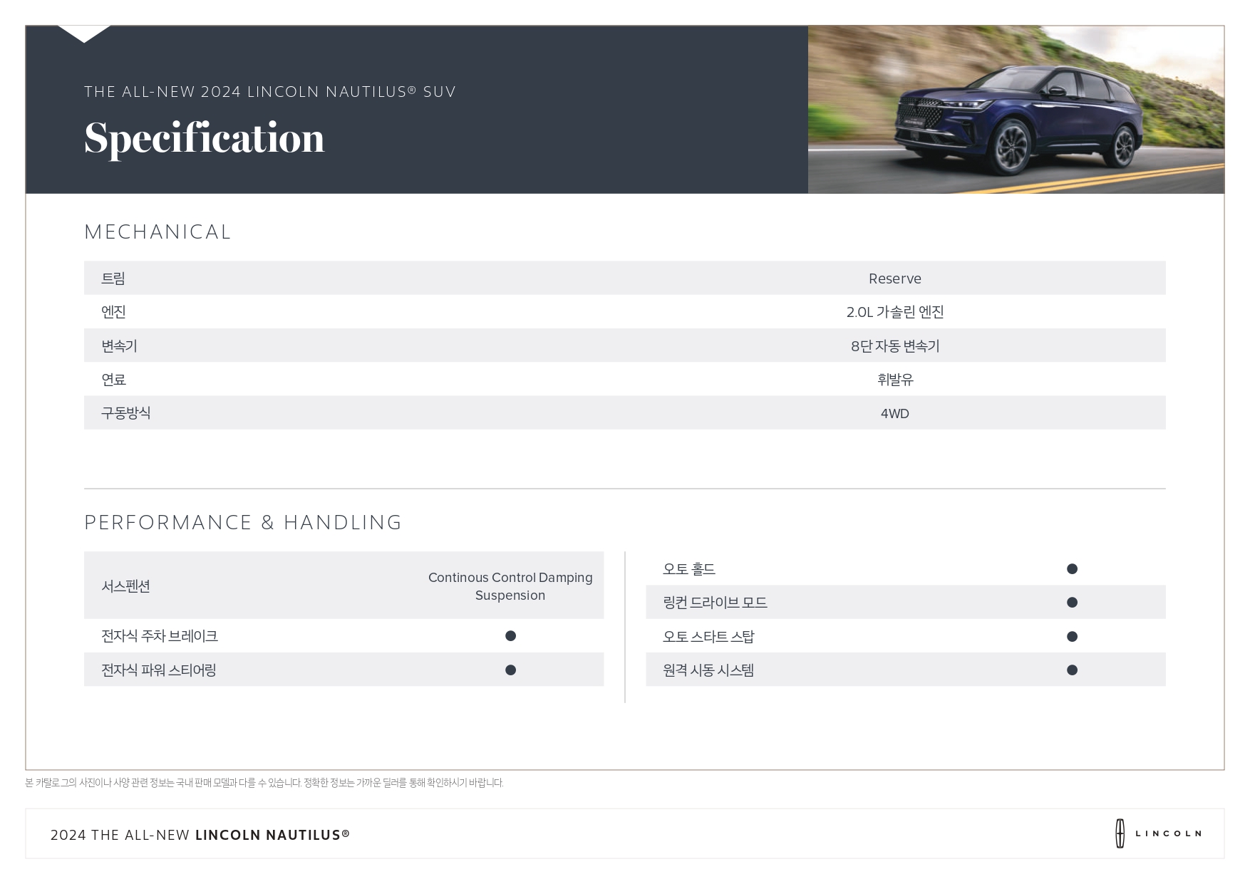 링컨 노틸러스는 현재 링컨 코리아에서 유일한 24년형 모델로, 완전 풀체인지가 이루어진 신형입니다.
