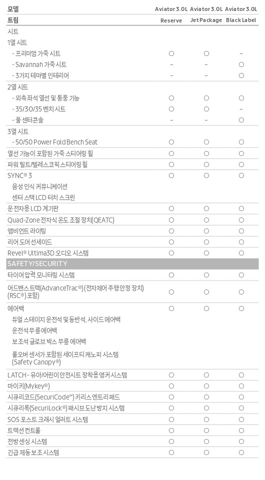 사실, 에비에이터는 3가지 트림 가격차이가 큰 편이 아니다 보니, 옵션 자체도 큰 차이는 나지 않는데요.