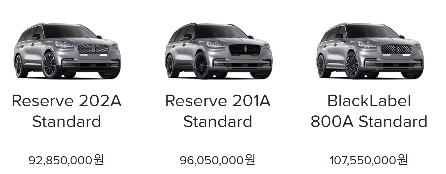 동생인 노틸러스와 형인 네비게이터는 단 한 가지 트림으로 판매되는 것 대비, 에비에이터는 무려 3가지 트림으로 판매되어, 이 부분 하나는 칭찬할만합니다.