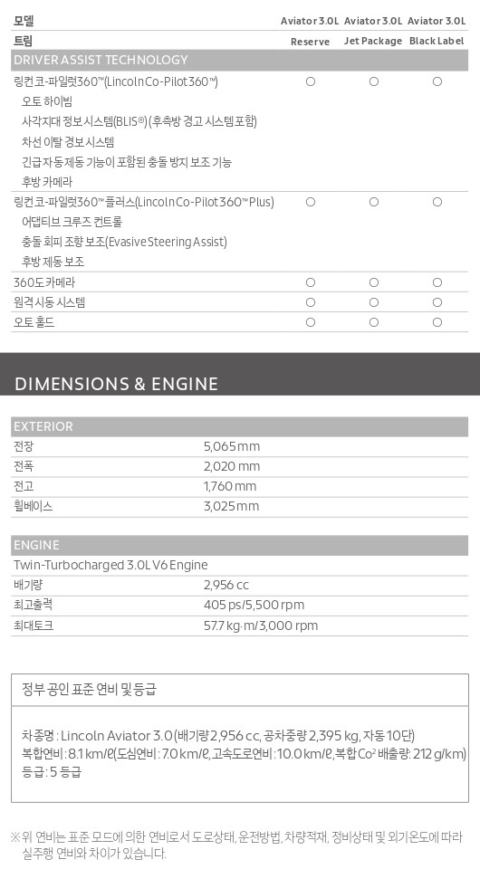 우선, 국내에 수입되는 에비에이터의 파워트레인입니다.