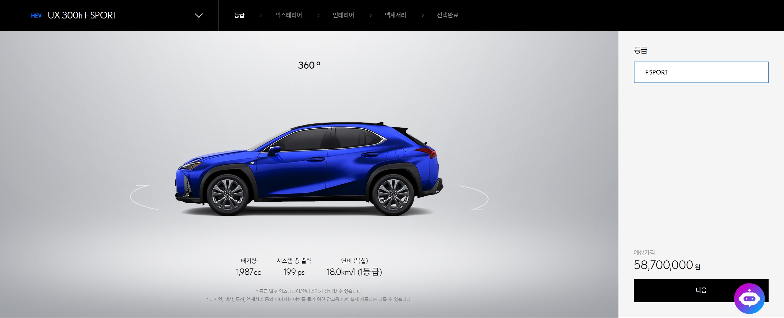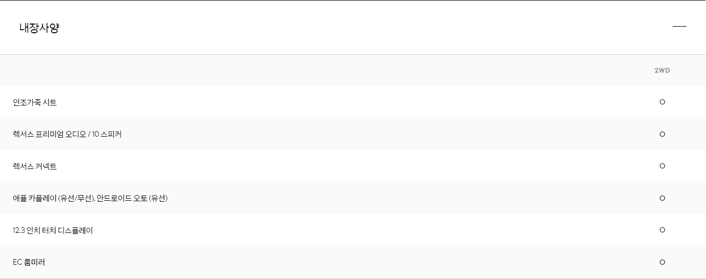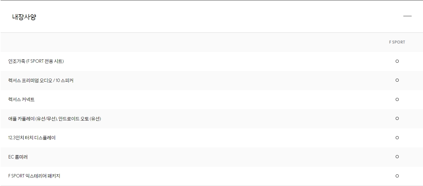기존에 풀옵션 트림을 담당했던 UX250h AWD 가 UX300h F스포츠에 통합되었기 때문에, F스포츠 옵션이 상당히 강화되었습니다.