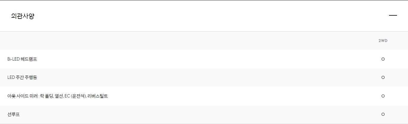 다음은 외관 사양