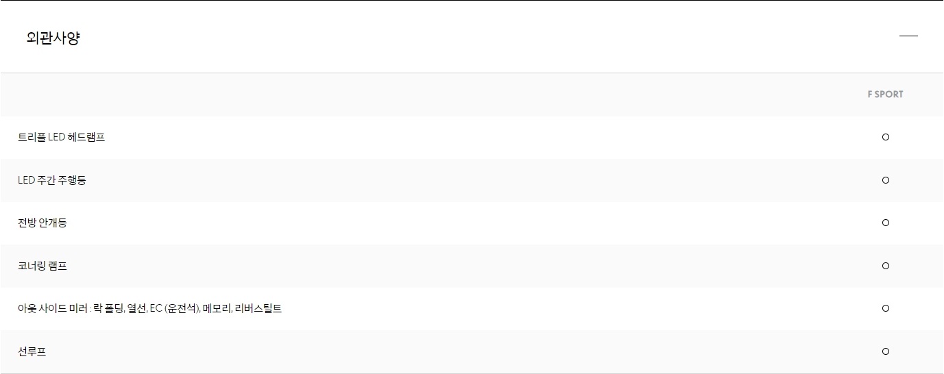 F스포츠 전용 시트 / F스포츠 익스테리어 패키지